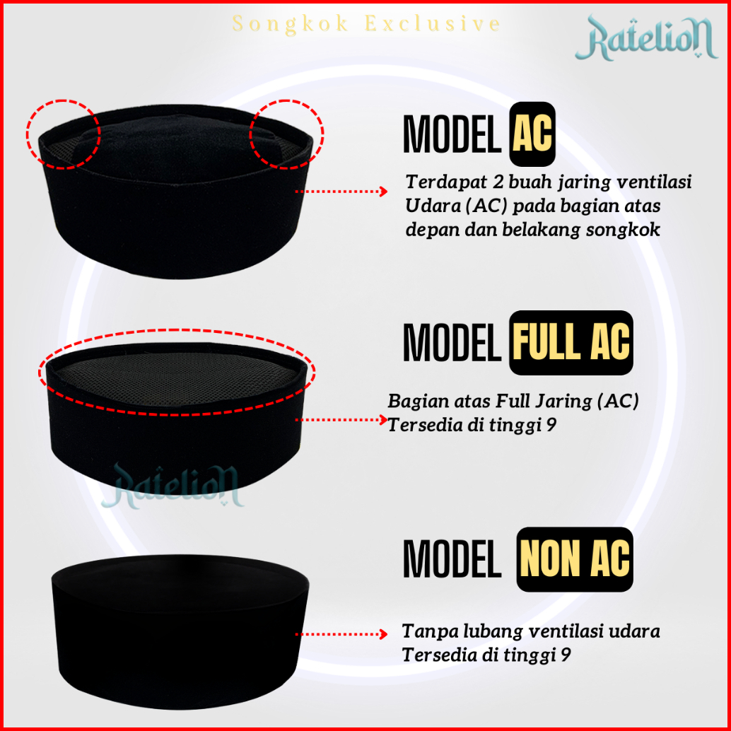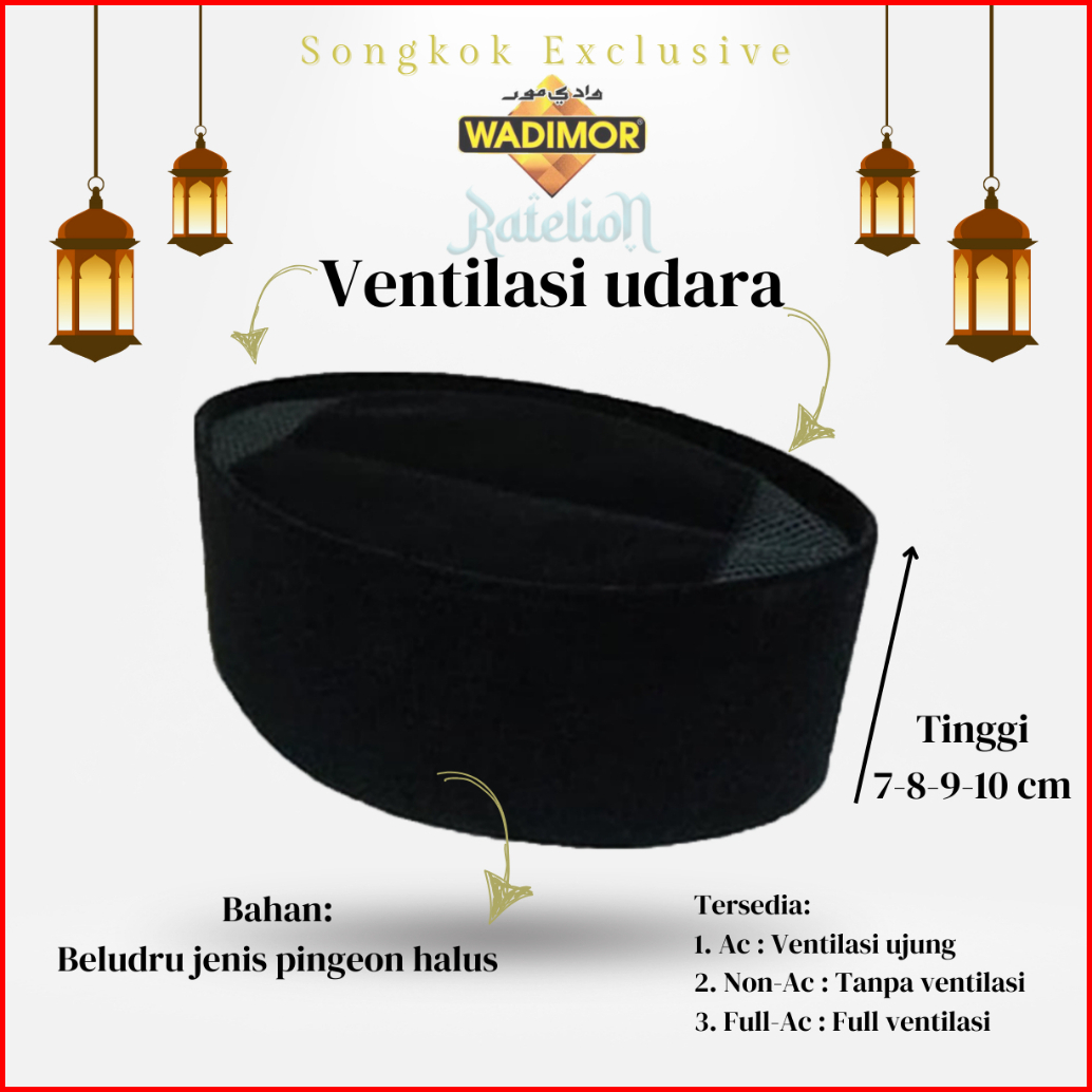 Peci Songkok Wadimor Ac Non Ac Hitam Polos Tinggi 7 8 9 10 Cm Kopiah Full Ac Jaring Original Kupiah Solat Pria Ukuran De