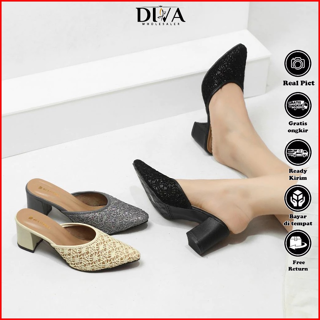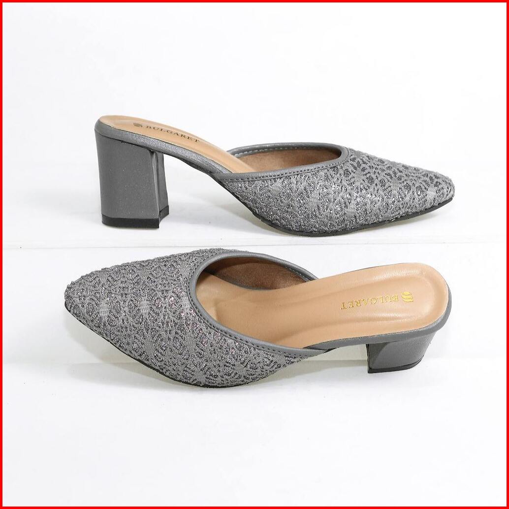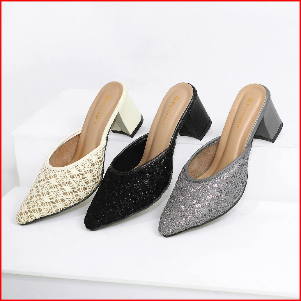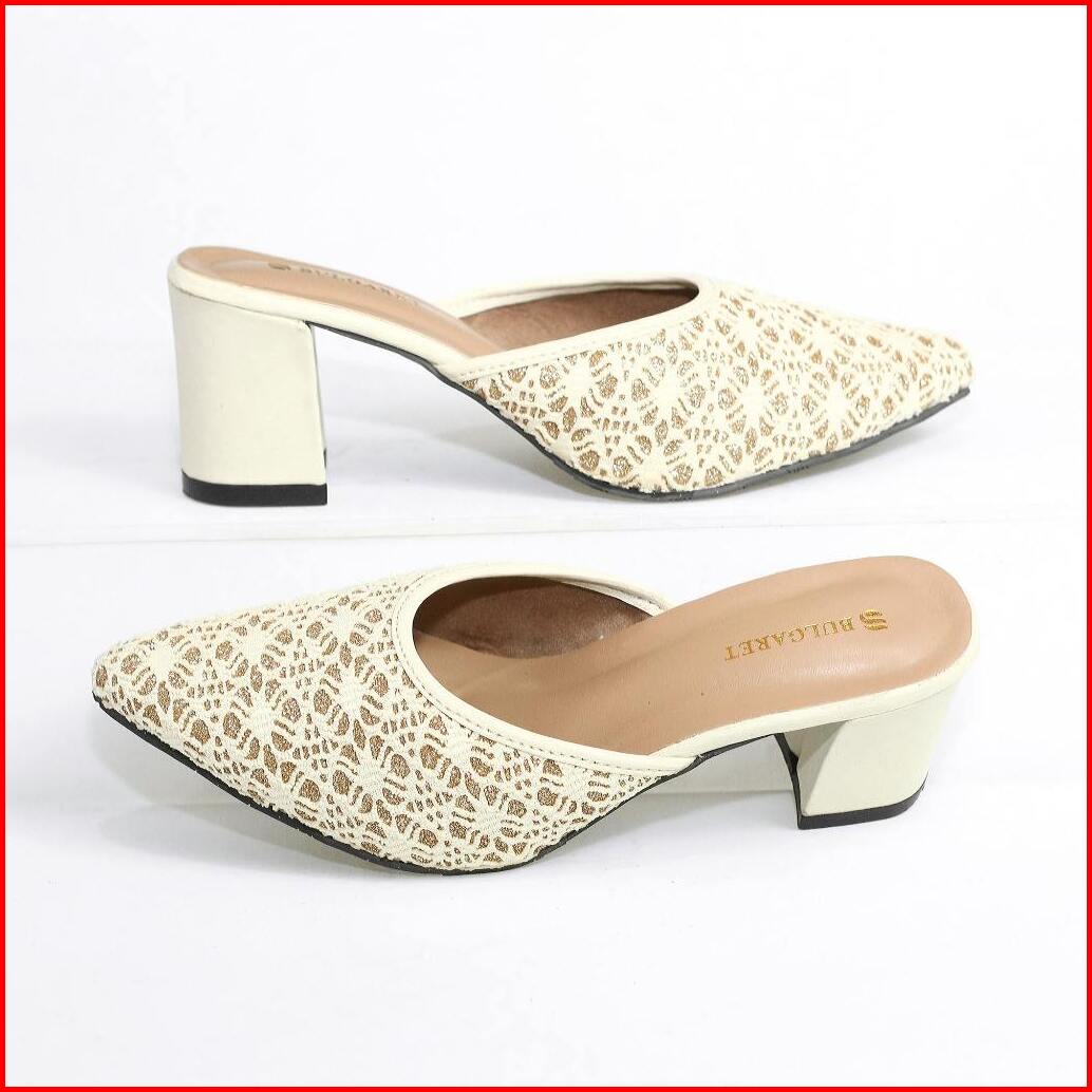 High Heels Wanita Sandal Heels Wanita Pesta Mules Brukat R 19
