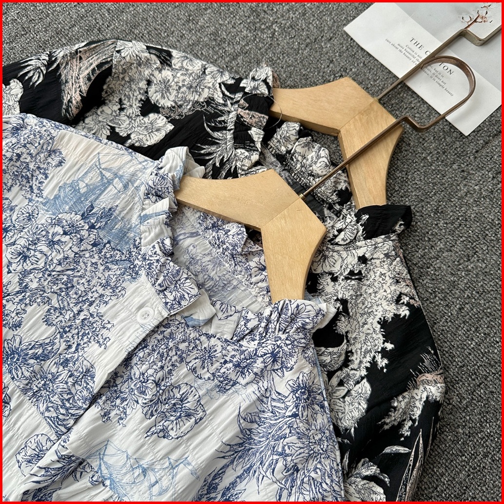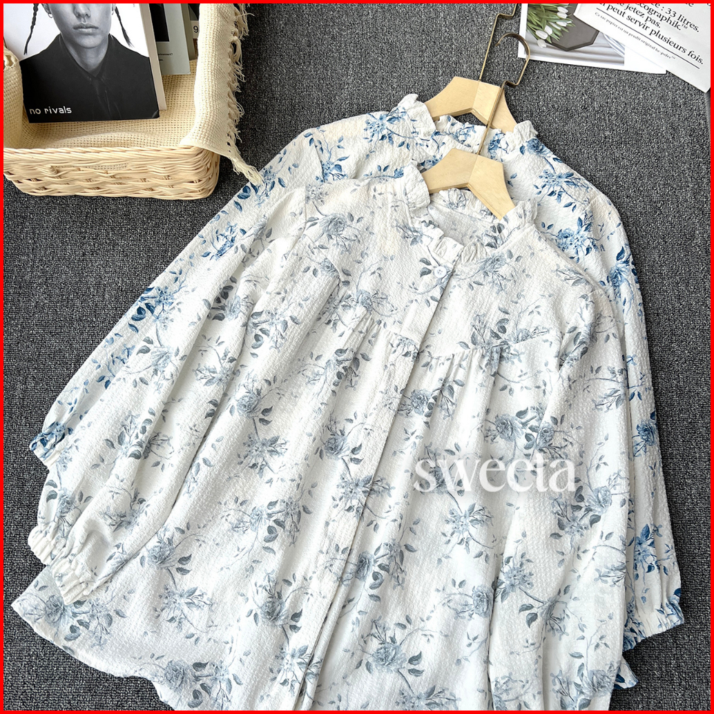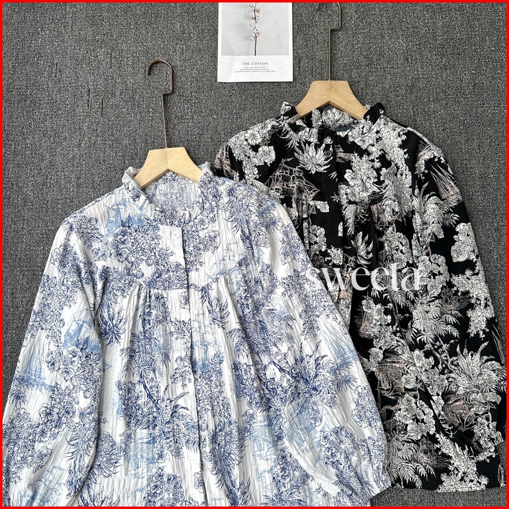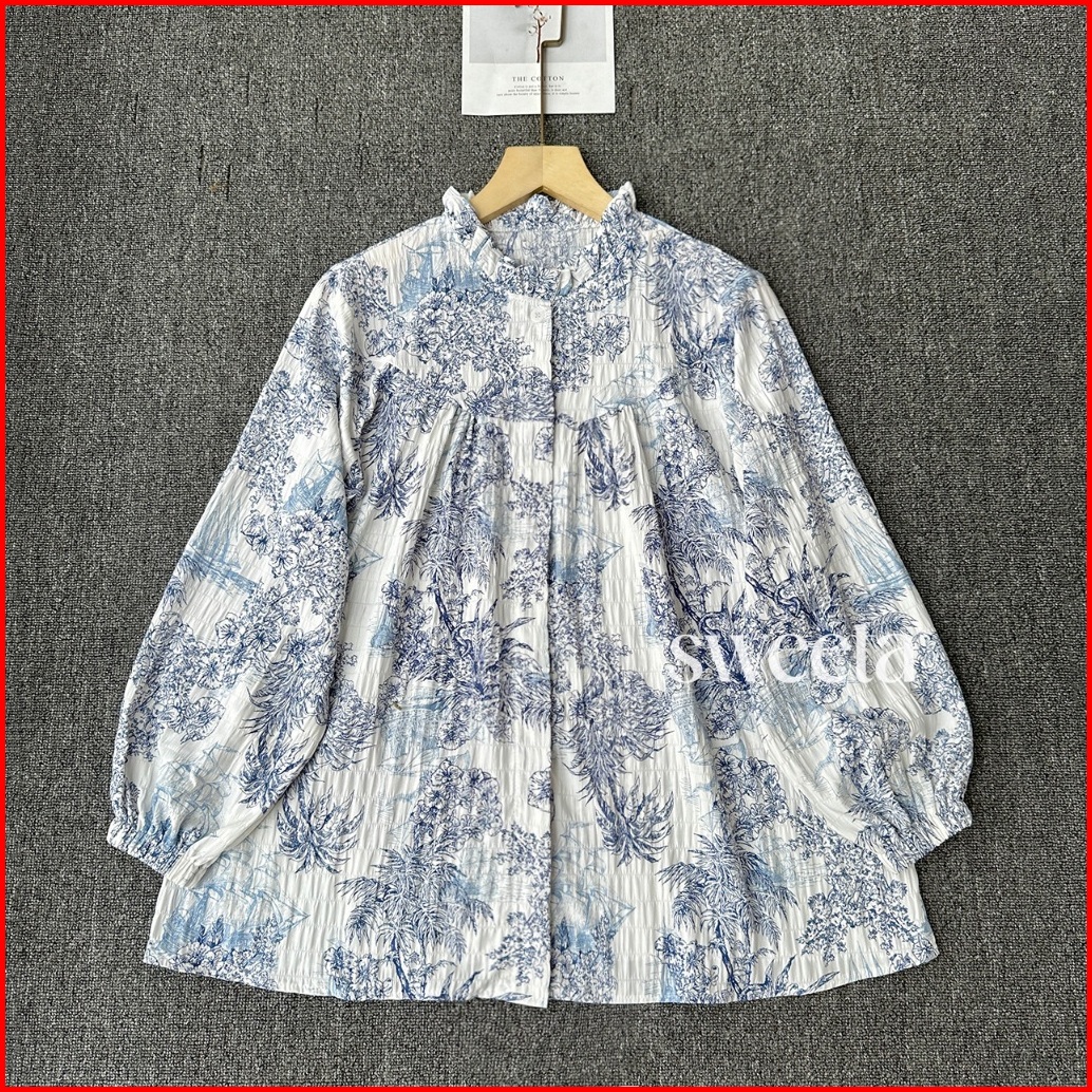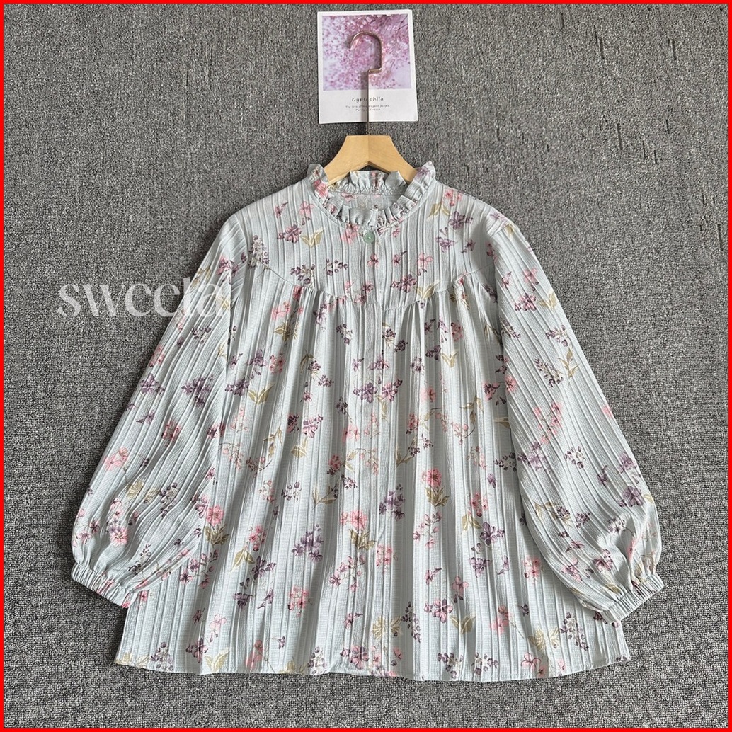 Sweeta Blus U Rample Motif Flower Lavanda Premium Ld 115 Cm Korea Style Kancing Dapat Dibuka Atasan Pakaian Wanita Musli