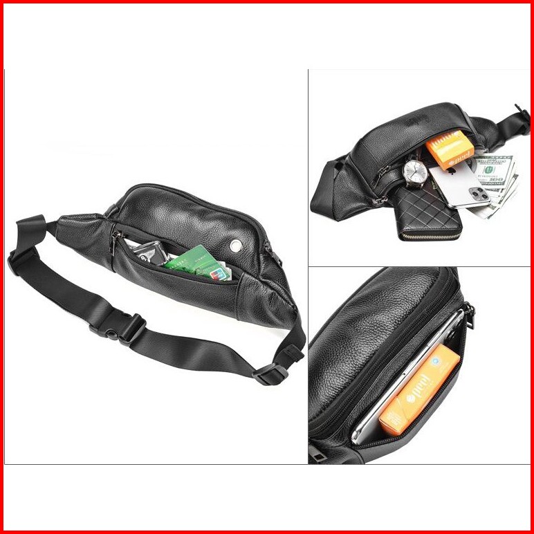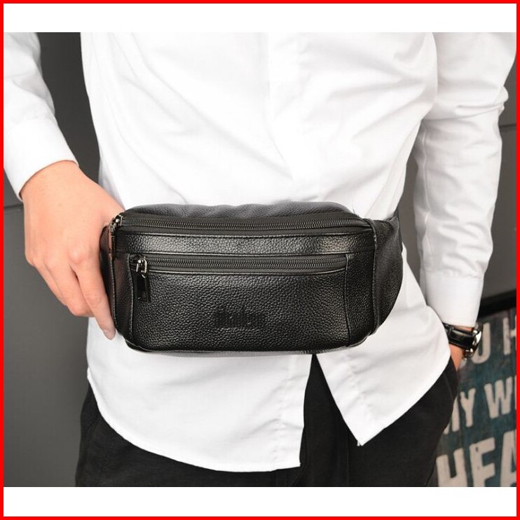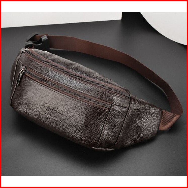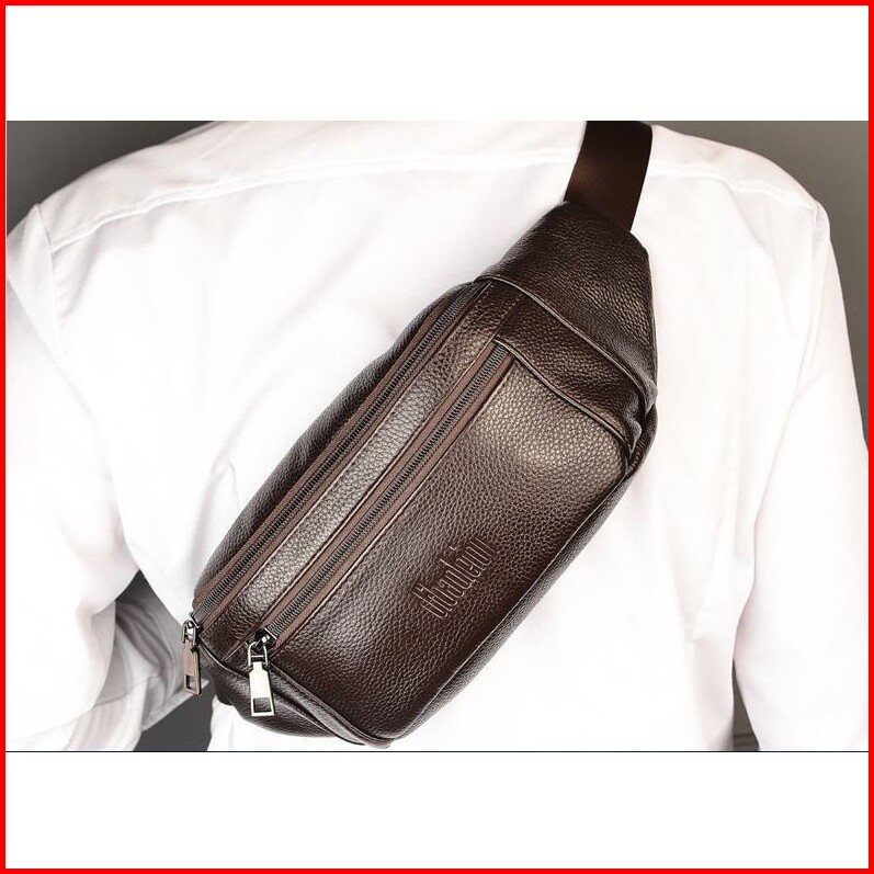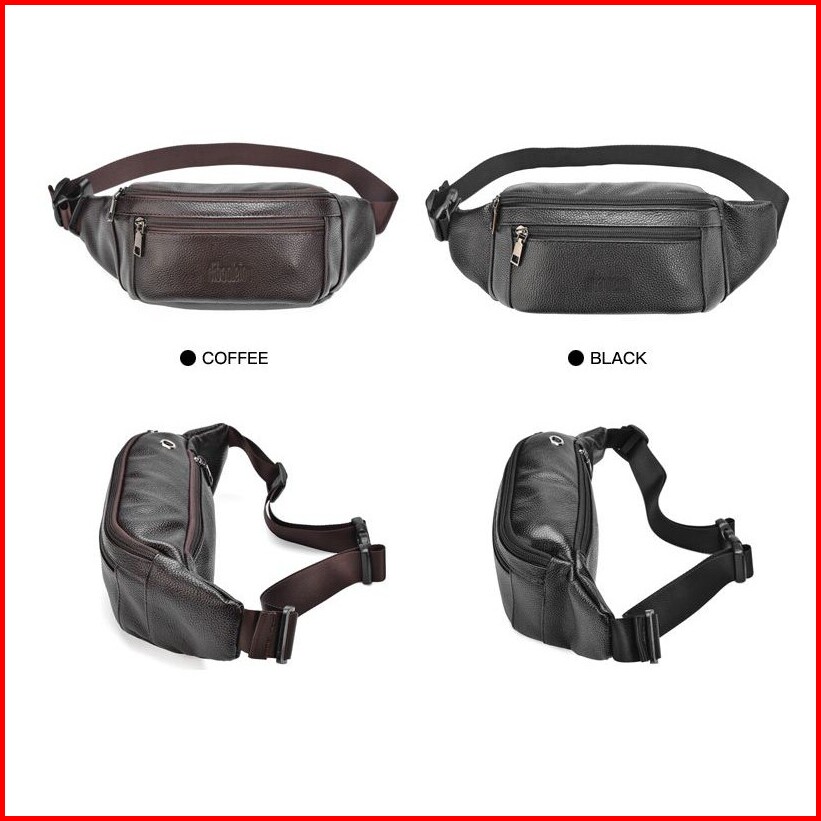 Waist Bag Tas Pinggang Selempang Pria Kulit Sapi Asli Import