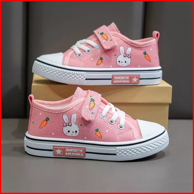 Cuci Gudang Sale 10.10 Littleaaron Bunny Canvas Sepatu Anak Fashion Perempuan Sepatu Motif Rabbit Sandal Anak Import Luc