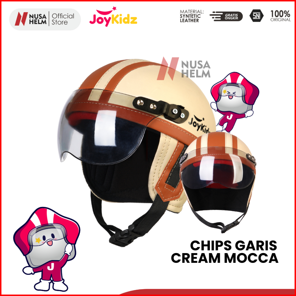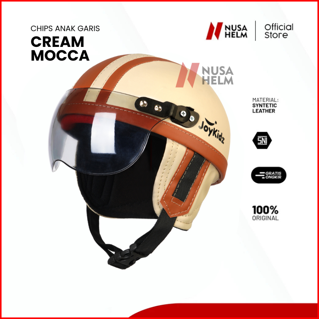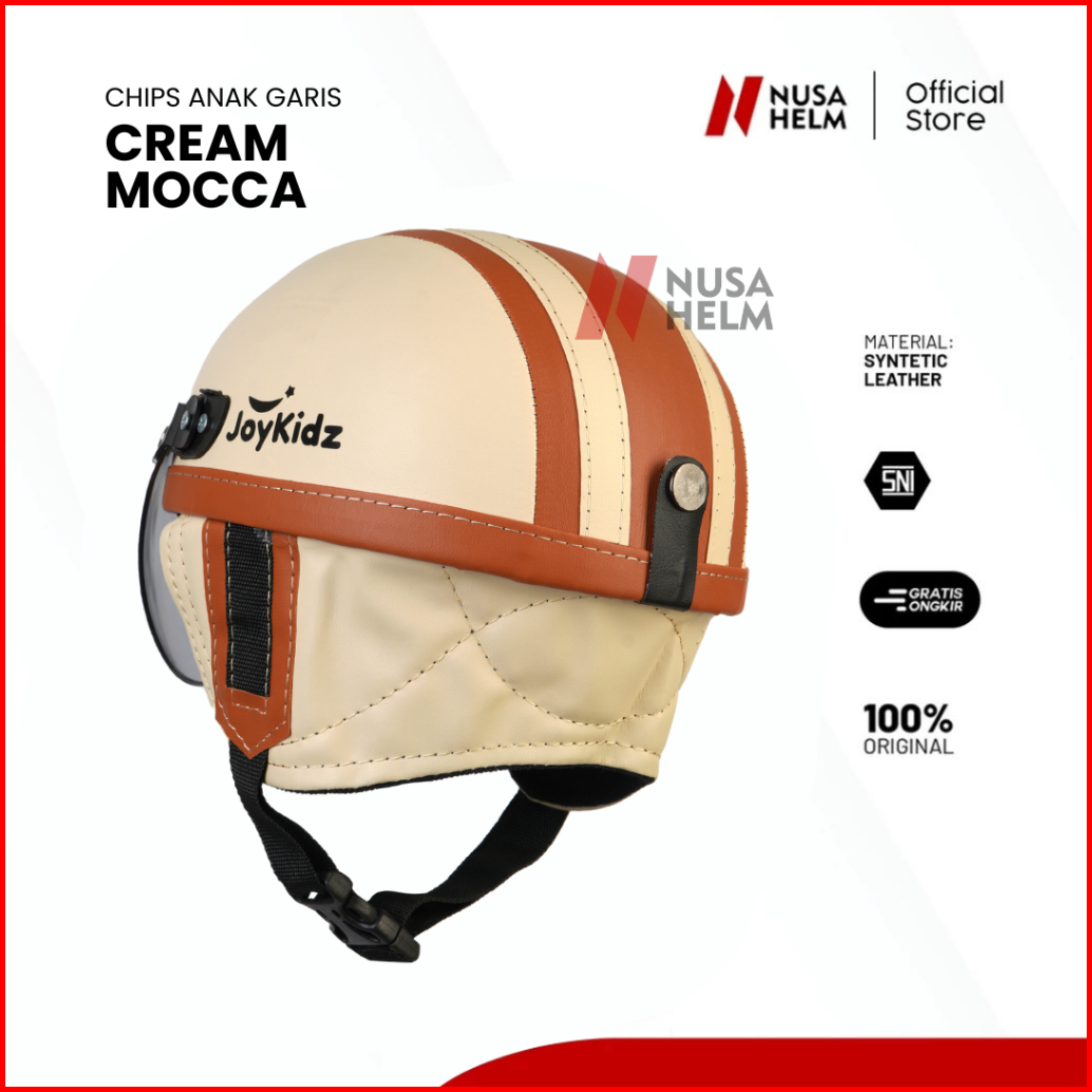 Helm Anak Polos Retro 1 2 3 4 5 Tahun Chips Garis Cream Coklat