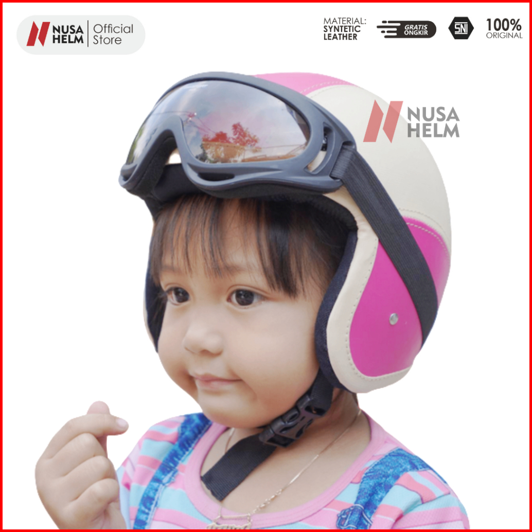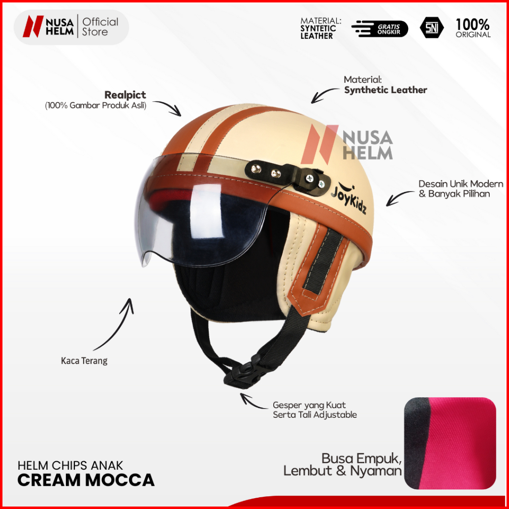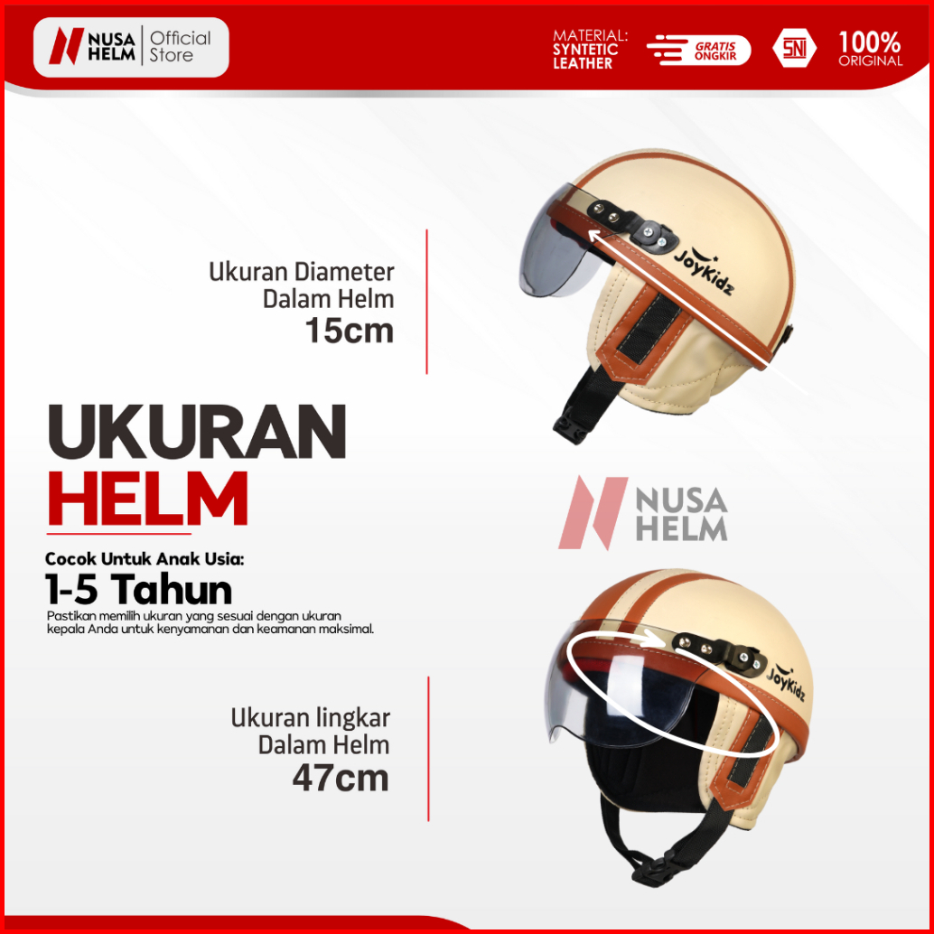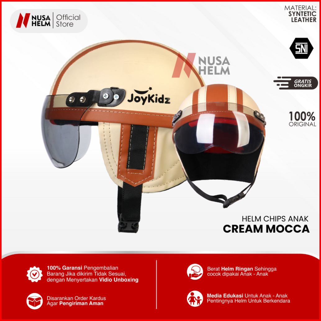 Helm Anak Polos Retro 1 2 3 4 5 Tahun Chips Garis Cream Coklat