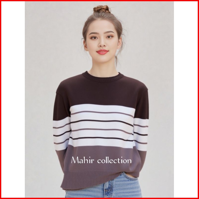 Tricolor Sweater Rajut Wanita Atasan Rajut Wanita Atasan Blus Sweater
