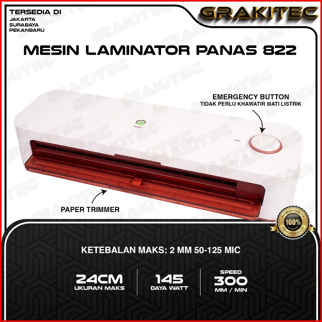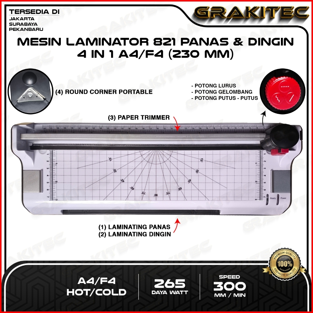 Mesin Laminating A4 F4 4in1 230mm 821 822 825 Fitur Combo Laminating Paper Trimmer Emergency Button