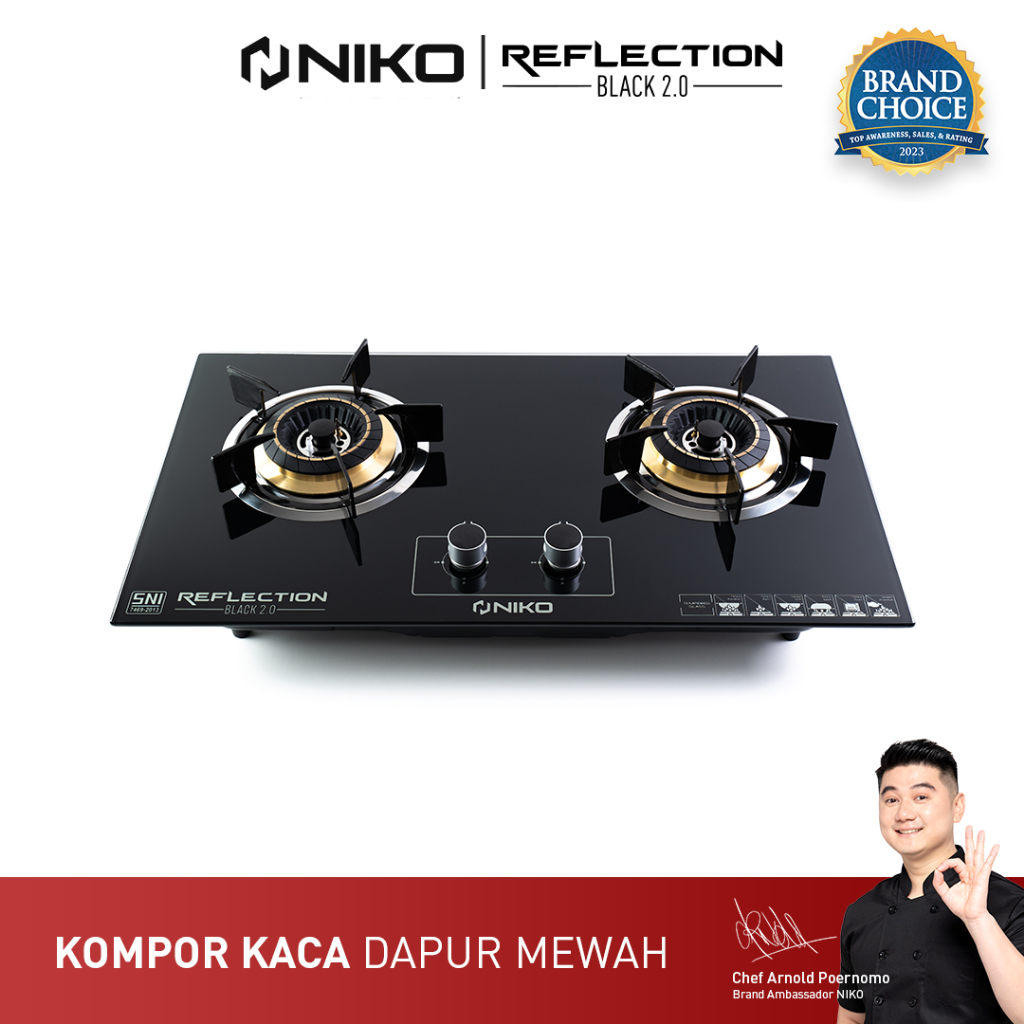 Kompor Gas 2 Tungku Kaca Stove Tanam NIKO Reflection 2.0 Garansi Resmi - Official Store