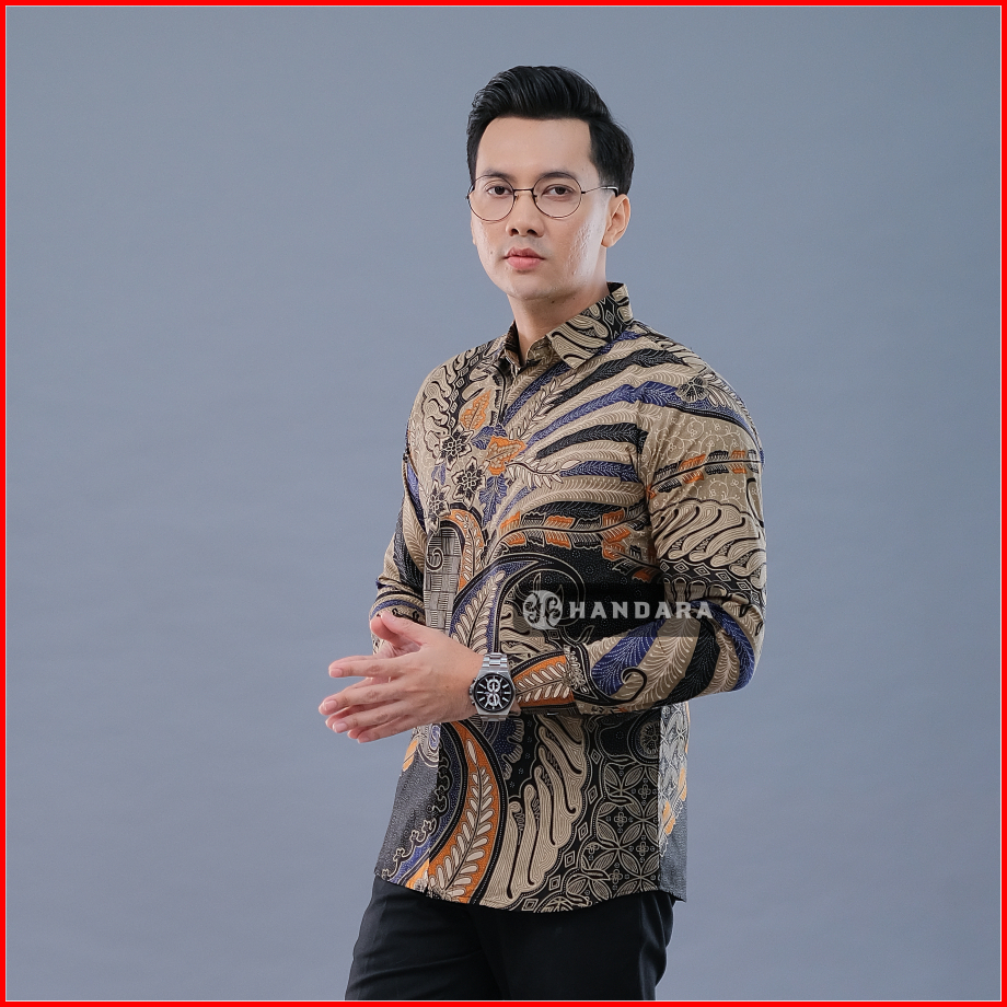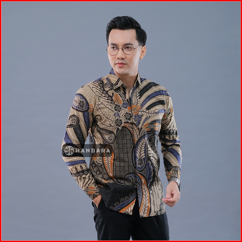 Handara Batik Premium Pria Lengan Panjang Slim Fit Furing - Lurik Bangsawan Krem