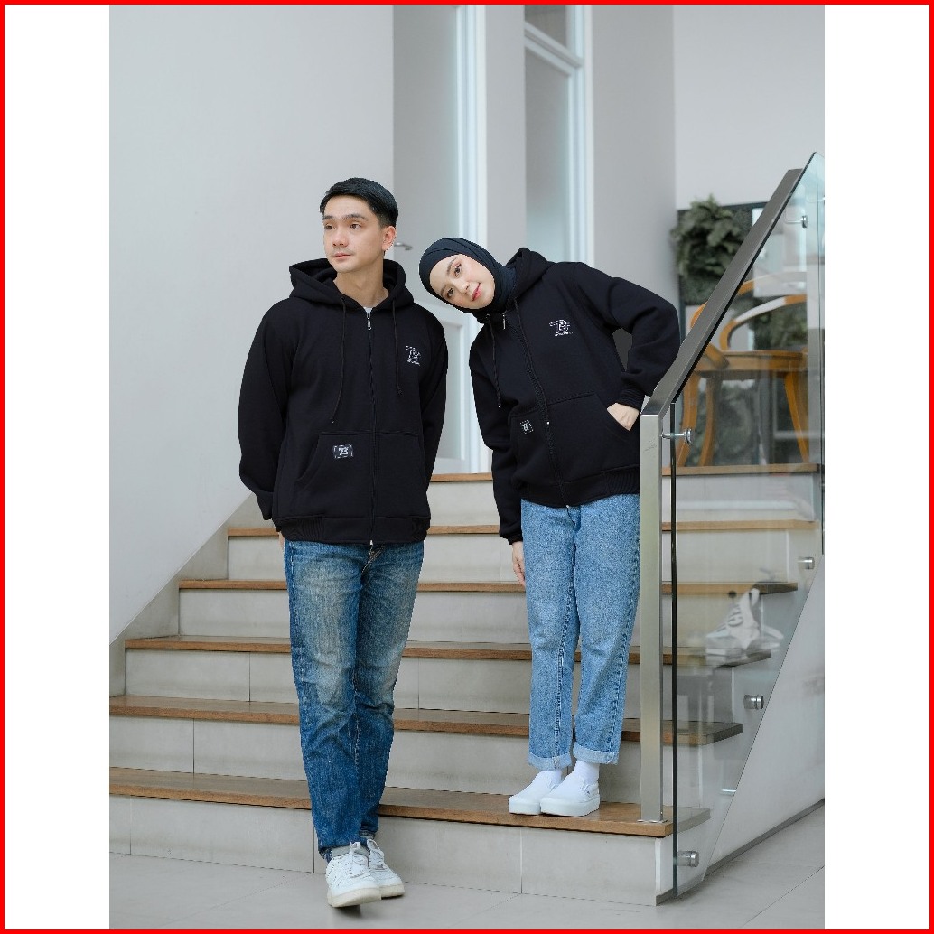 Bozzino - Hoodie Couple Zipper Tebal Sweater Pria Wanita