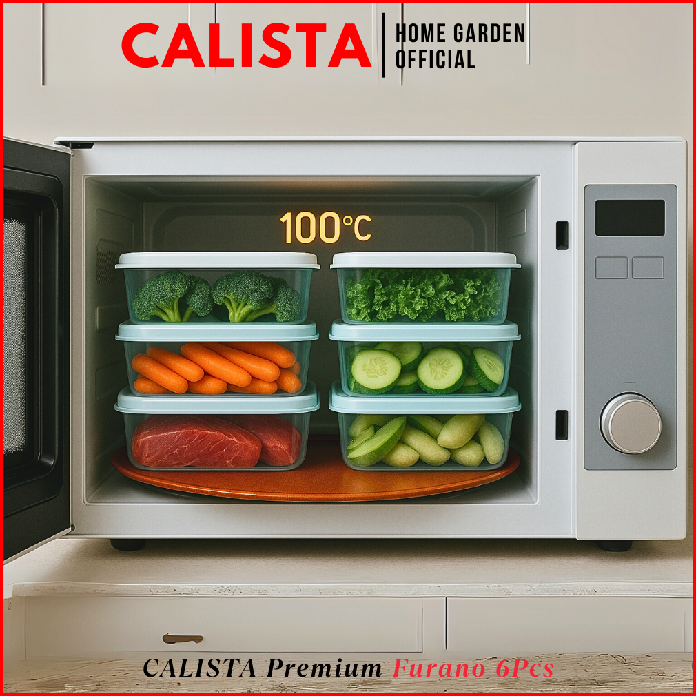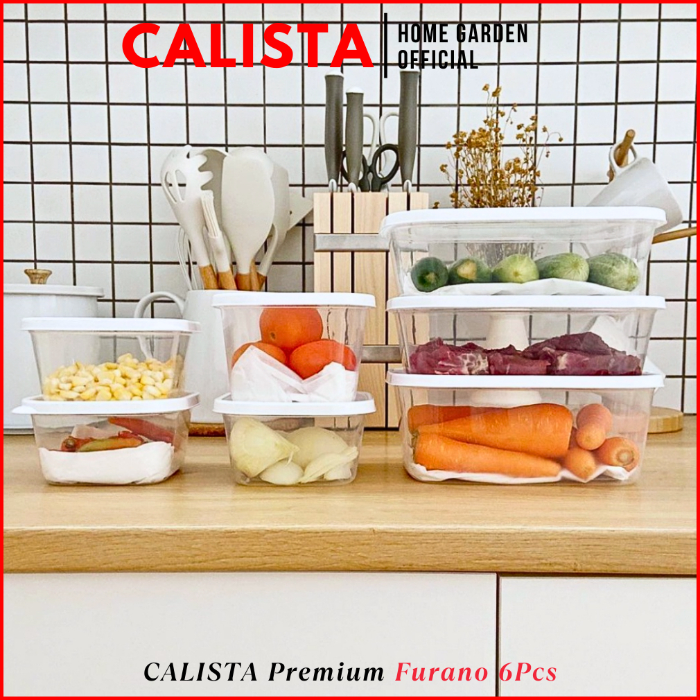 Calista Toples Plastik Bening Furano 6pcs Tempat Makan Kotak Penyimpanan Kulkas Food Prep Set