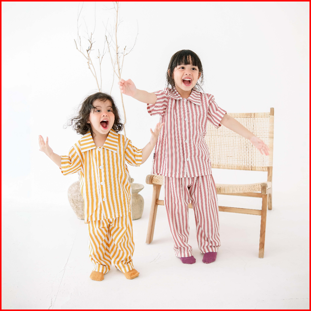 Little Me - Piyama Anak Salur Michi Setelan Baju Tidur Rayon Anak Usia 6 Bulan - 8 Tahun
