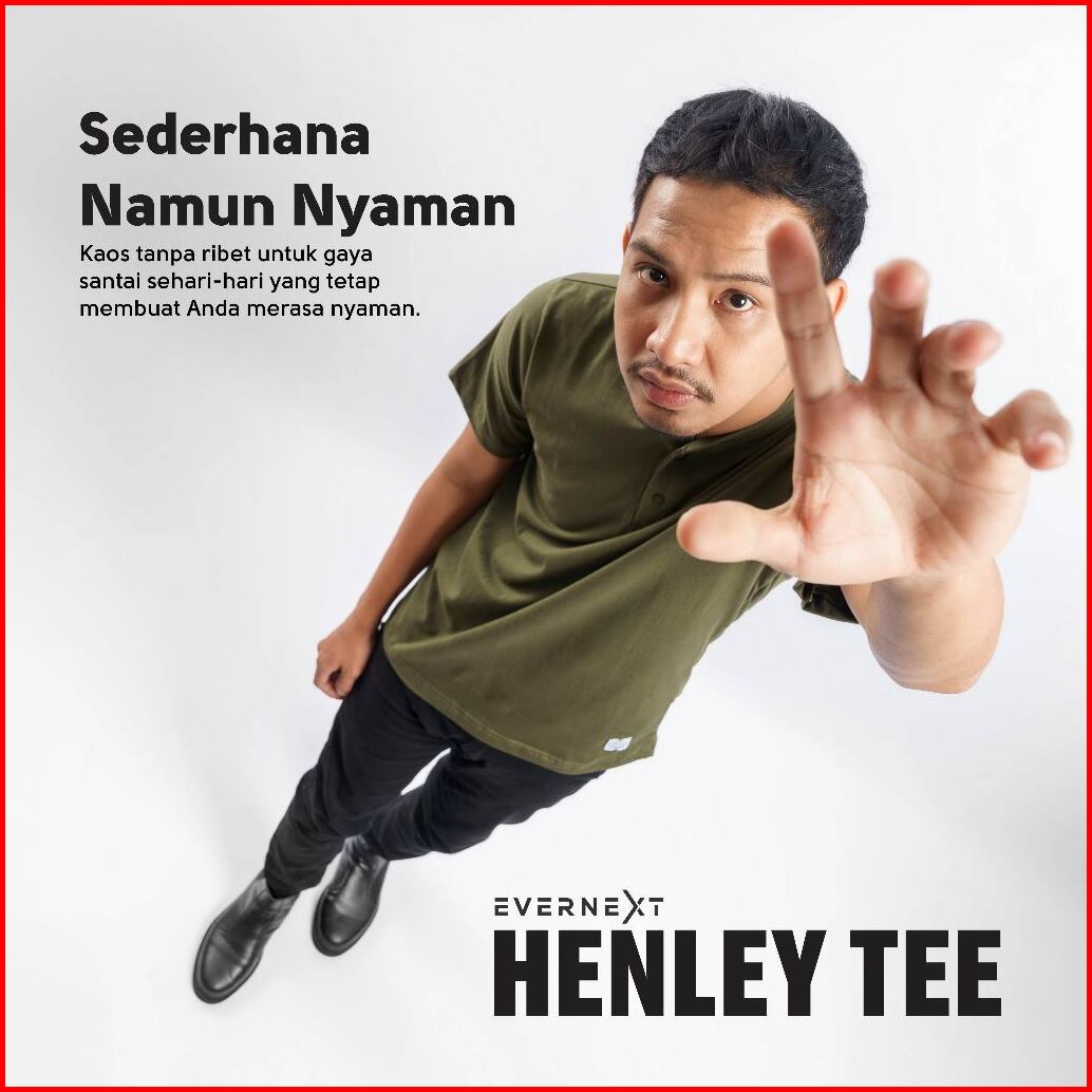 Evernext - Kaos Polos Pria Henley Tee Cotton Combed 30s Pria Basic T-shirt Pria Kaos Kancing Lengan Pendek Pria