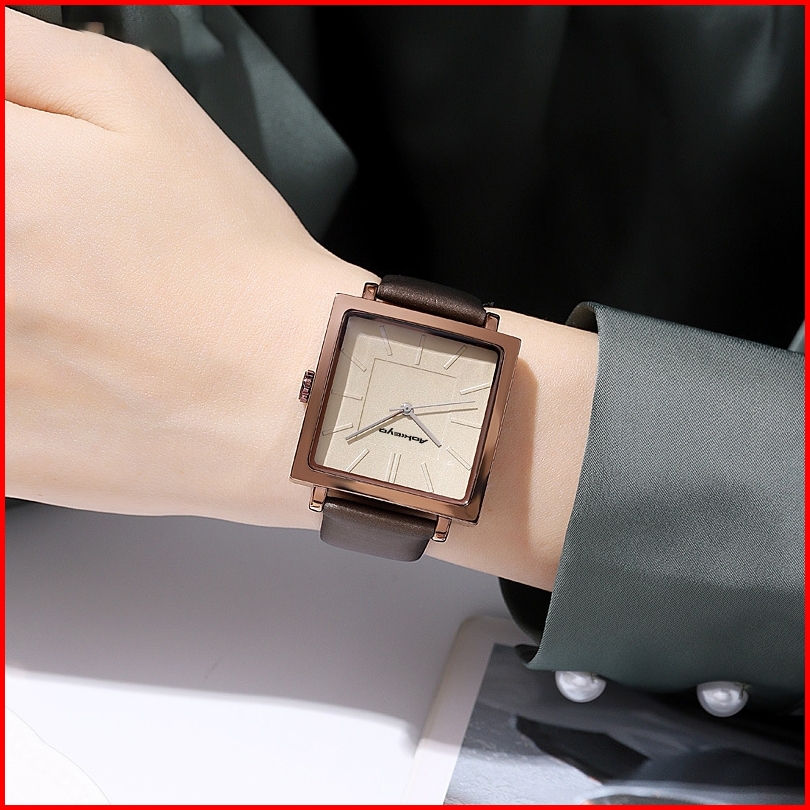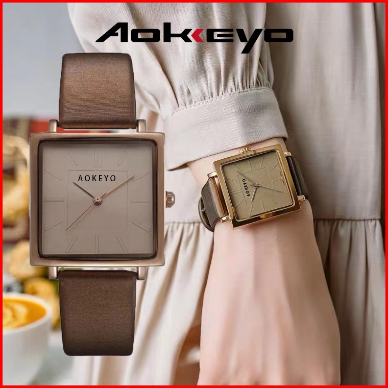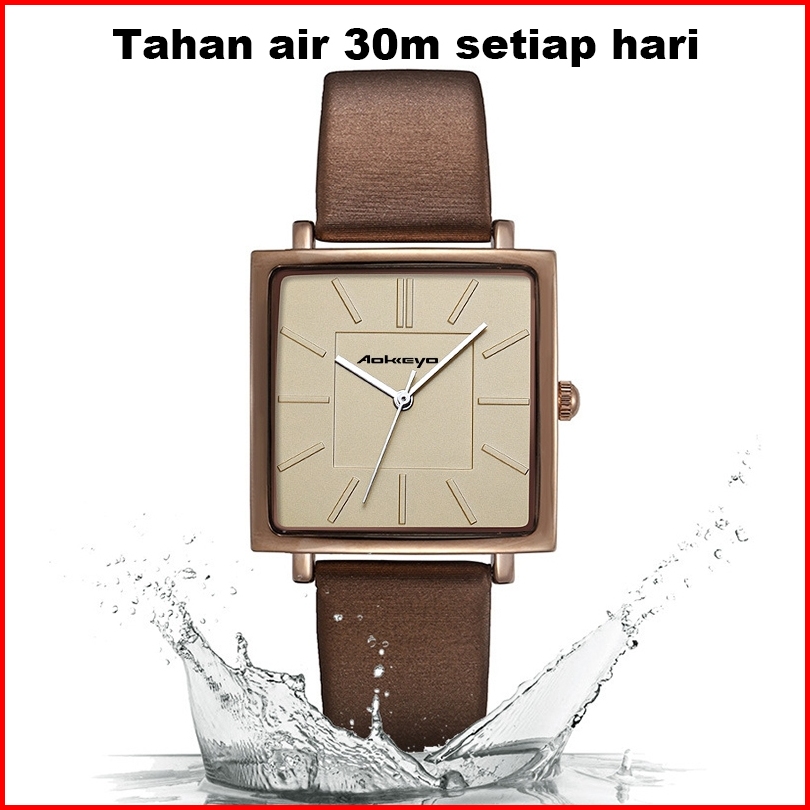Aokeyo F61 Jam Tangan Wanita Retro Santai Square Dial Tali Kulit Anti Air Analog Kuarsa Jam Tangan Cewek Codfree Box Kar