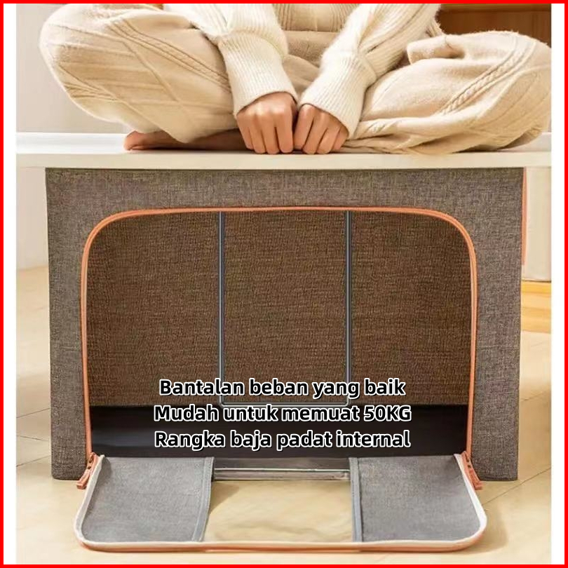66l 110l Kotak Penyimpanan Tahan Lembab Storage Box Pakaian Serbaguna Mainan Box Baju Besar Organizer Lipat Linen Katun
