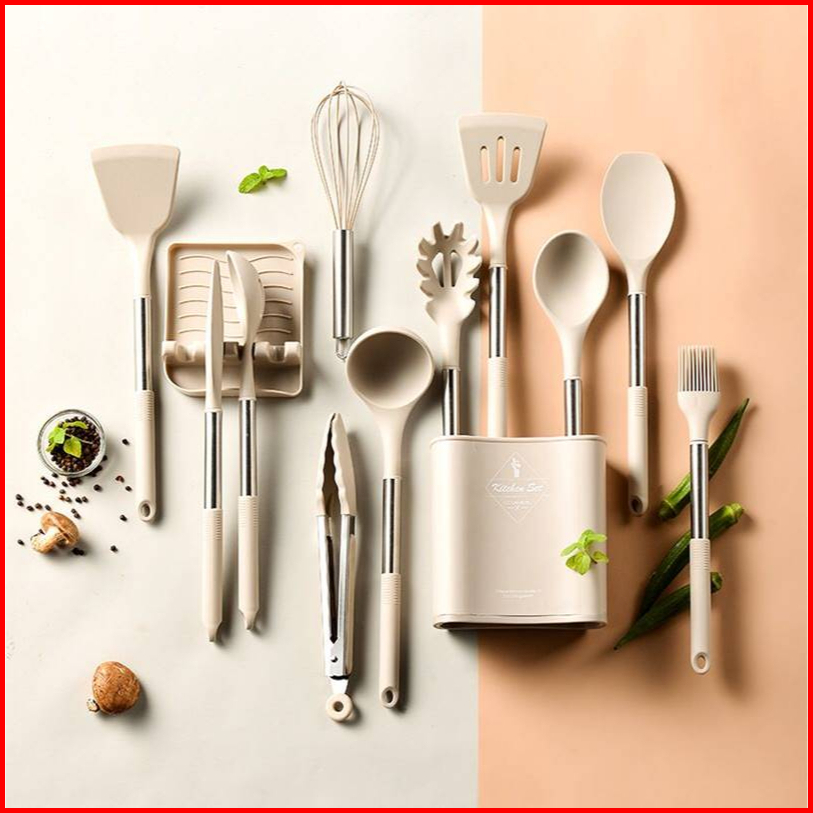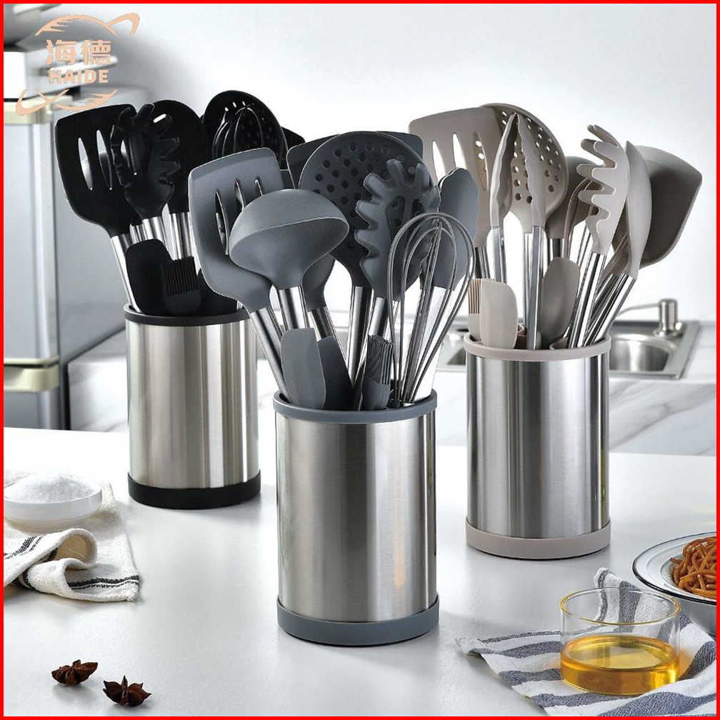 Square Bucket Utensil Set 13pcs Spatula Peralatan Masak Silicone Utensil Set Kitchen Set Spatula Sutil Silikon Set 13pcs