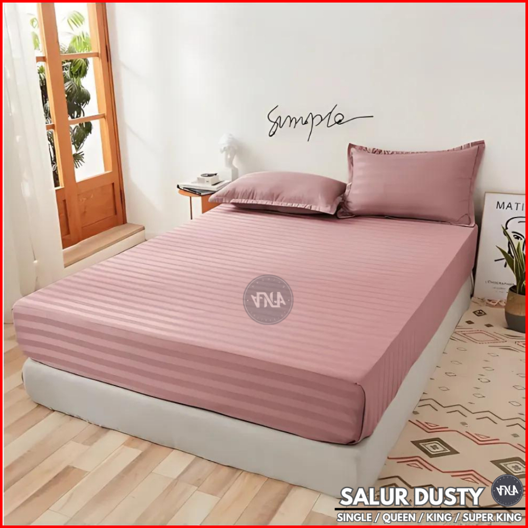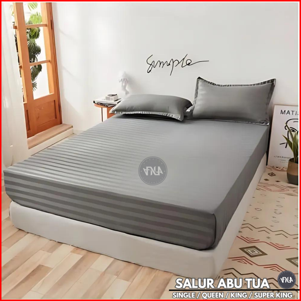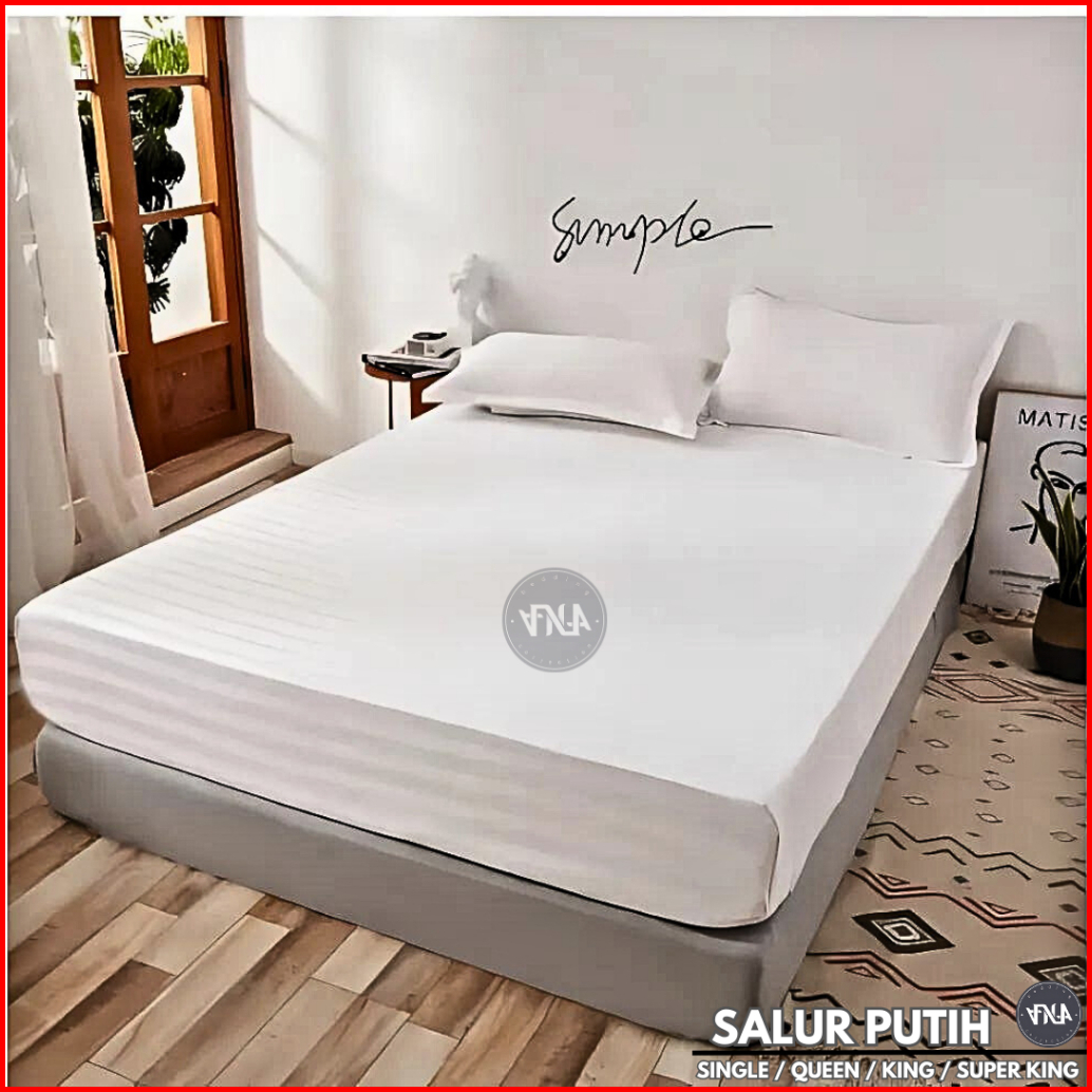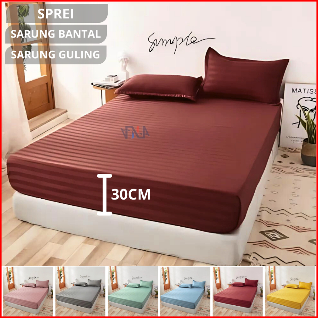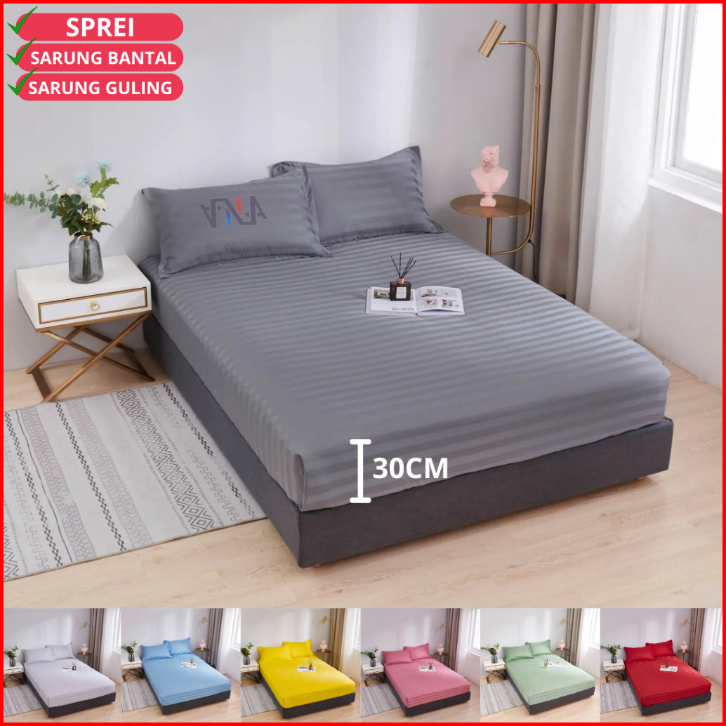 Ready Tinggi 30cm Sprei Set Hotel Salur Bahan Microtens L Silk Premium Grade A Lebih Tebal Lembut