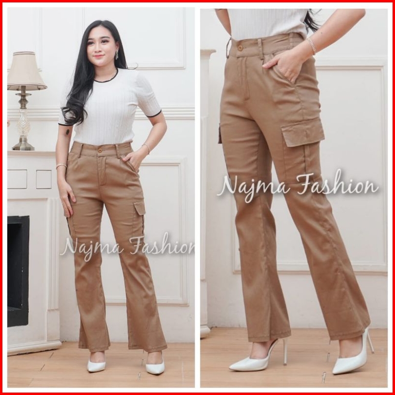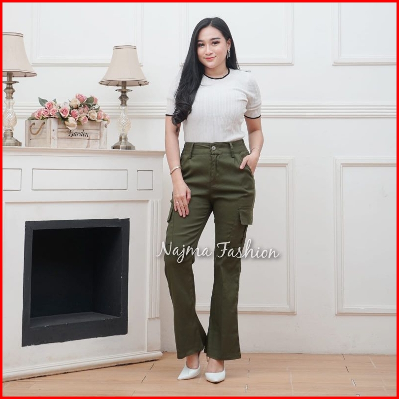 Celana Cutbray Cargo Wanita Twill Strecth Melar Premium