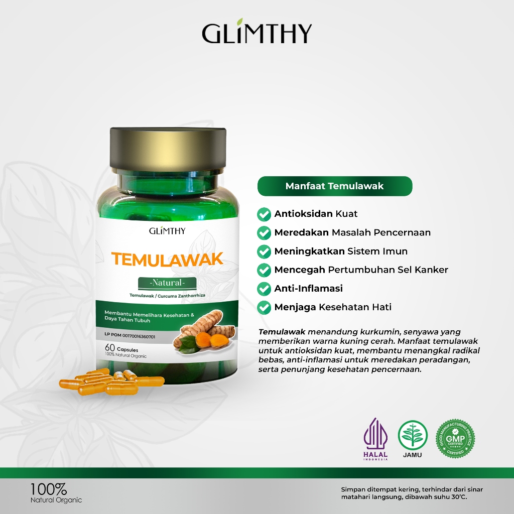GLIMTHY Natural Temulawak Obat Herbal Penambah Nafsu Makan Maag Asam Lambung PRODUK ASLI BPOM