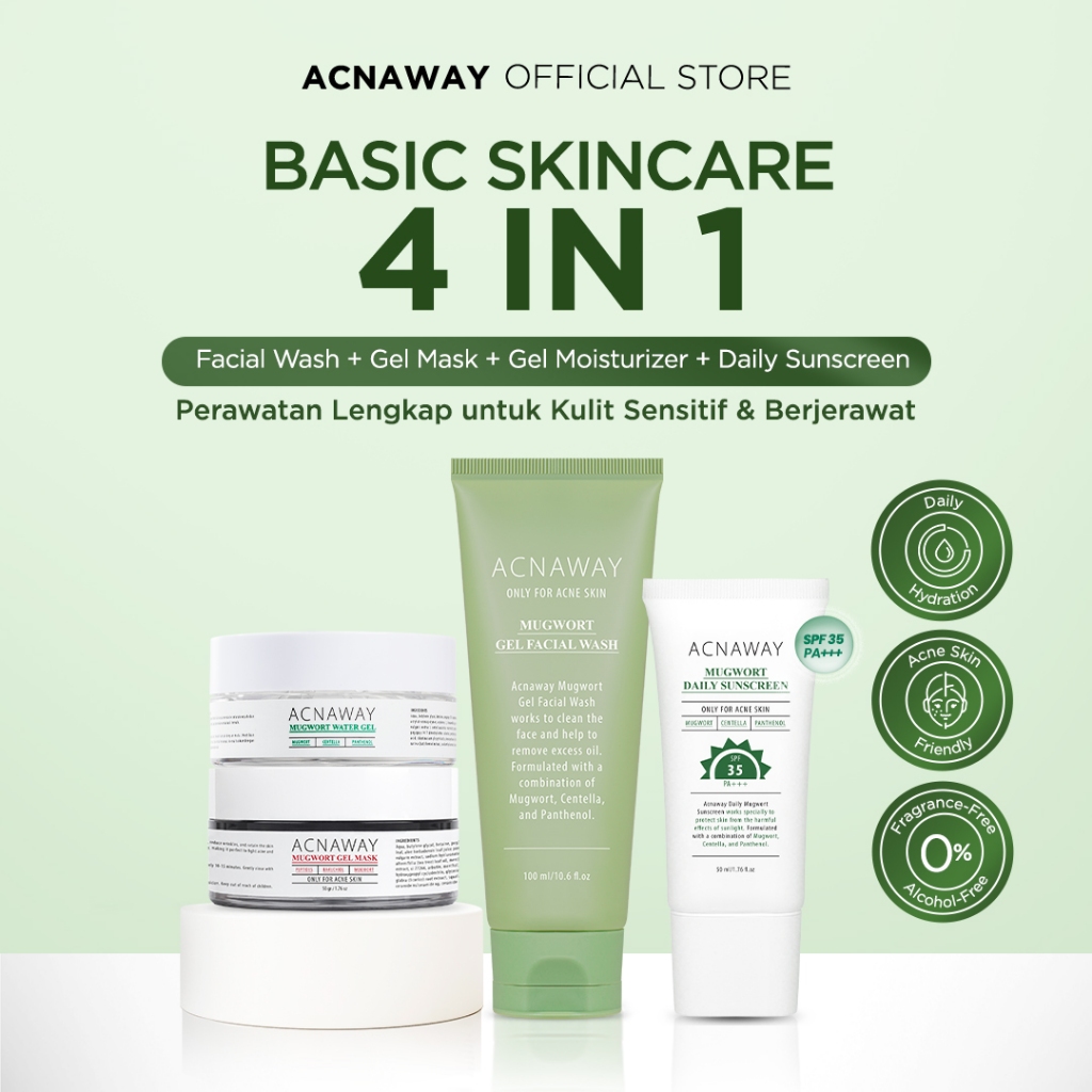 ACNAWAY 4in1 Acne Care Defense & Basic Skincare Rangkaian Lengkap untuk Kulit Berjerawat & Sensitif
