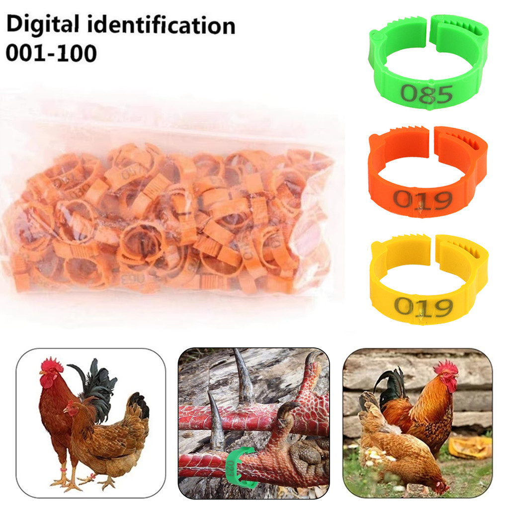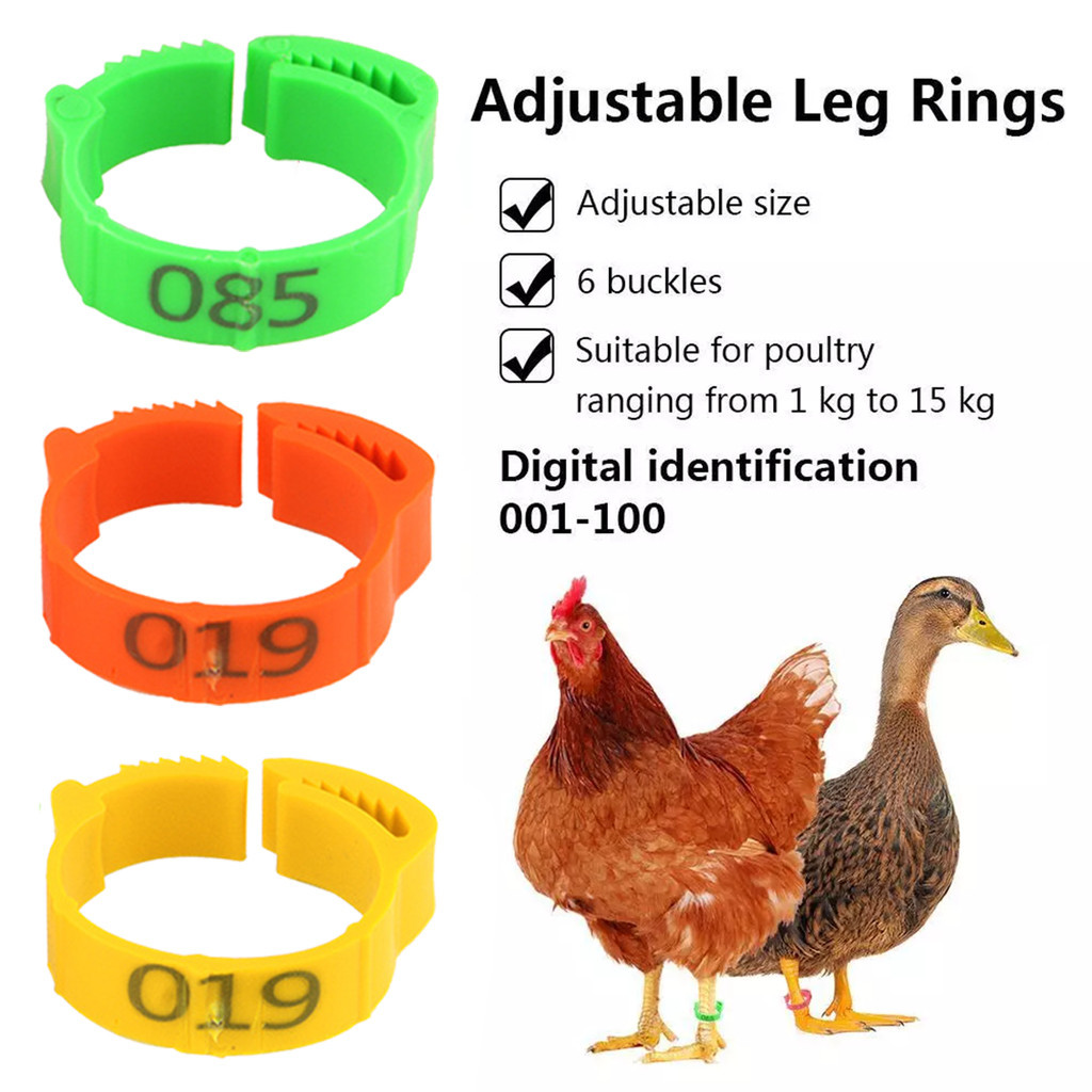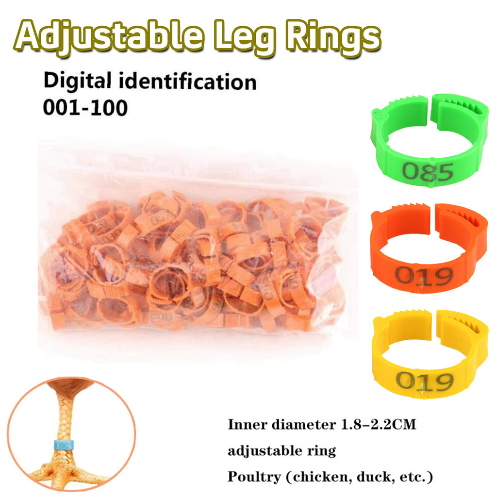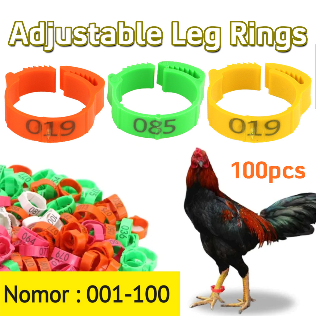 100PCS Ring Kaki Ayam Adjustable Bebek Klip Gelang Unggas Plastik Nomor 001-100 Cincin Kaki Tanda Ring