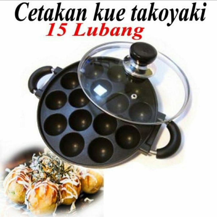 Cetakan Takoyaki 15 Lubang Anti Lengket + Tutup kaca terlaris