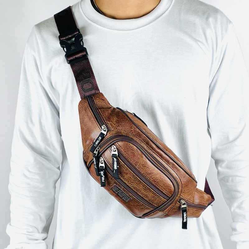 Tas Kulit Pria Tas Waistbag Pria Keren Polo Amstar Tas Selempang Pria kulit Tas Pinggang Tas Pria Kekinian
