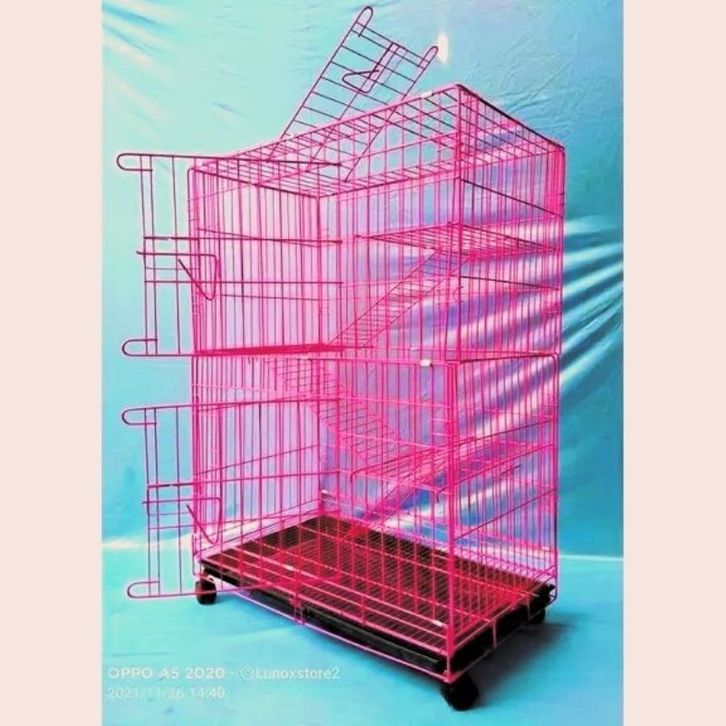 Kandang Kucing Tingkat 3 Size L 90x60x45 cm + Roda Muat 3-4 Ekor Kucing