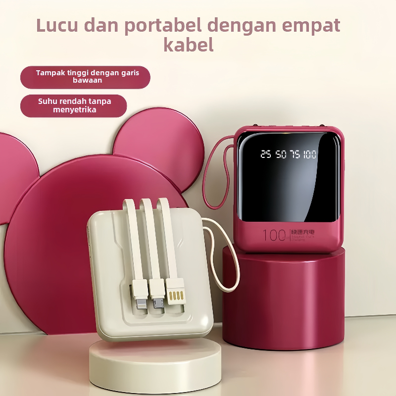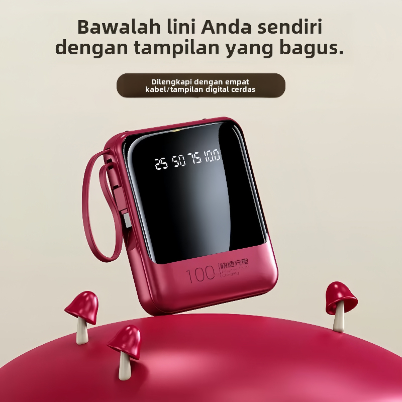 [Star]PowerBank 20000mAh Mini With 4 Kabel Data USB Micro Type C Fast Charging LED Senter Display