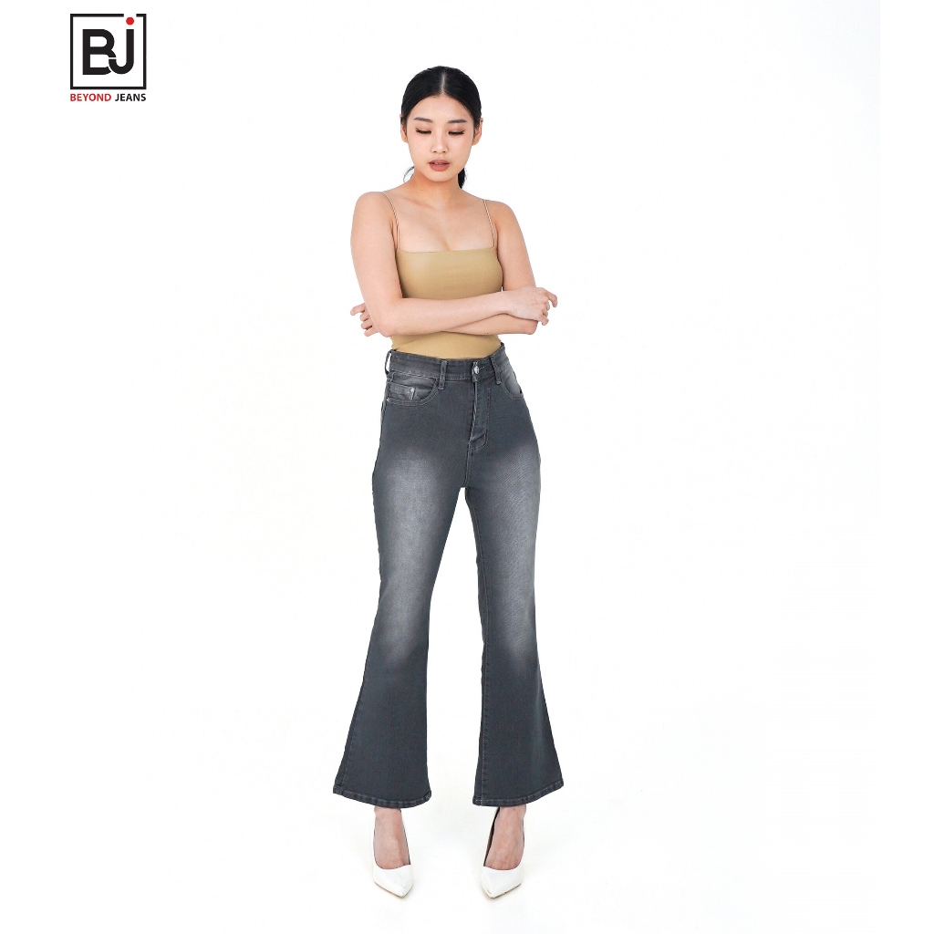 Beyond Jeans Nesis Abu Tua - Celana Jeans Model Cutbray Wanita Cewek Kekinian Original Terbaru
