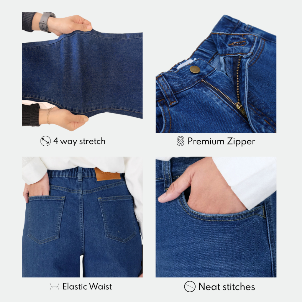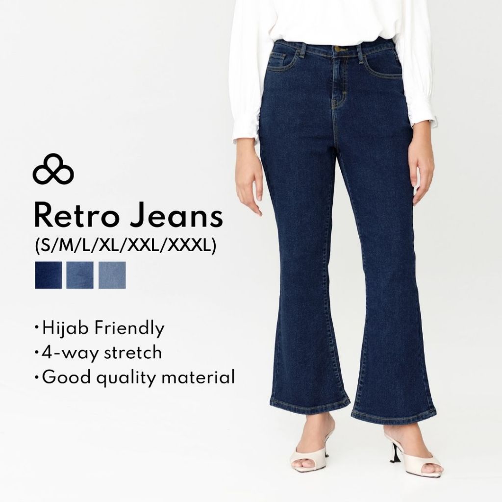 Atala Scarves | Jeans Retro Comfort Stretch | Celana Cutbray Highwaist Wanita