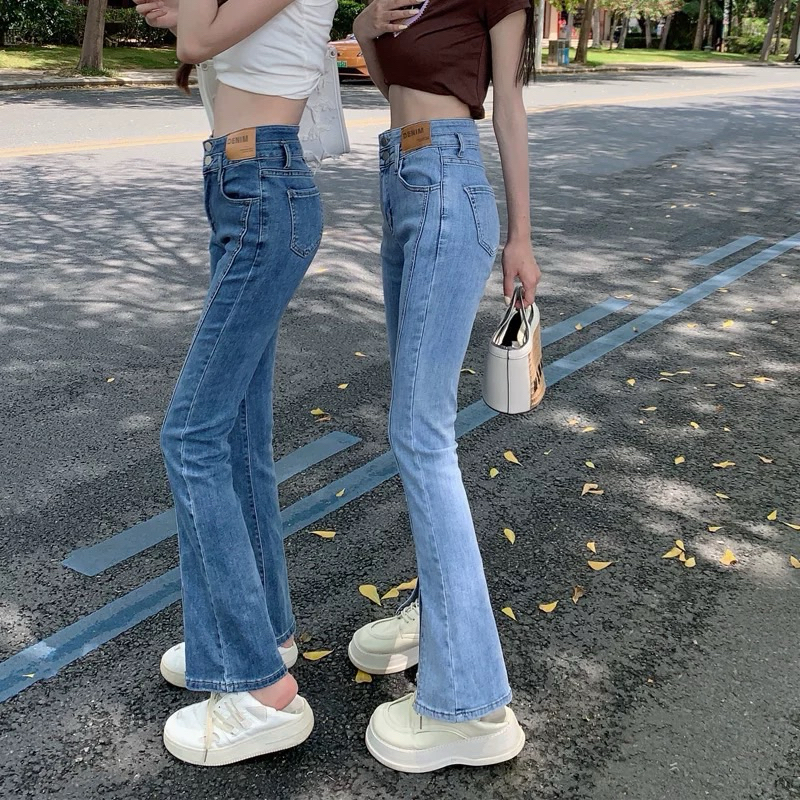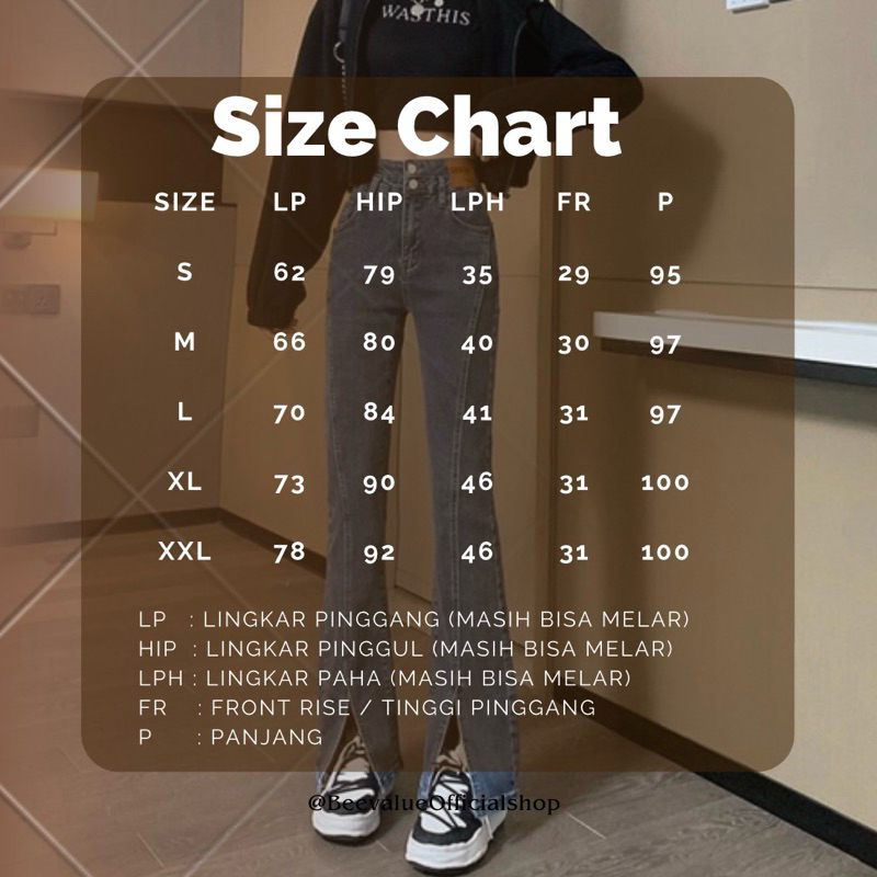 [Beevalue] Celana Jeans Panjang Wanita Highwaist BootCut | CutBray Stretch Ngaret Motif Belah Depan Bahan Impor | Celana