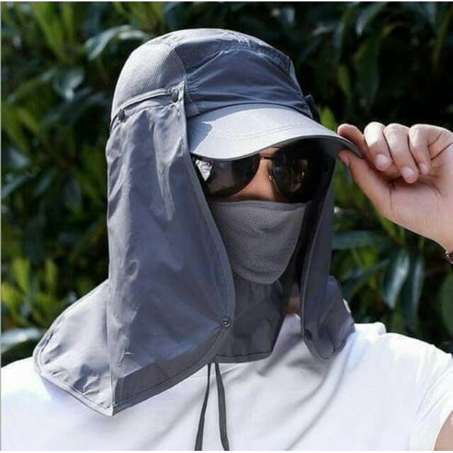BBAMBU TOPI MANCING / TOPI GUNUNG - TOPI JEPANG - TOPI RIMBA DENGAN MASKER - TOPI ANTI UV MATAHARI