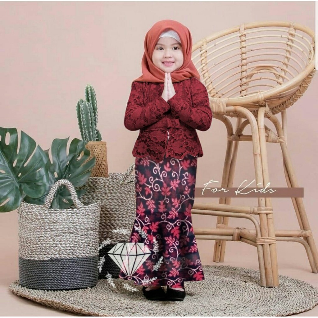 REALPICT SET SHIREEN KIDS KEBAYA BRUKAT CORD TULANG ANAK & ROK BATIK DUYUNG 7 WARNA SET SHIREN