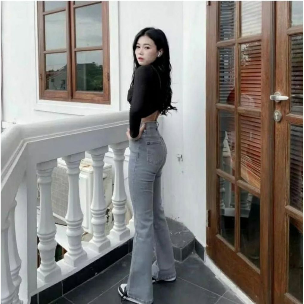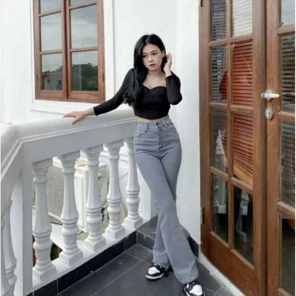 Highwaist Cutbray Jeans Wanita-Celana Panjang Denim Cutbray