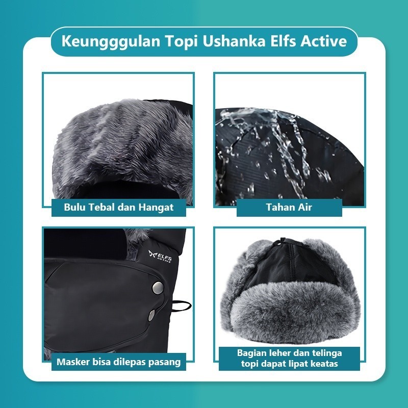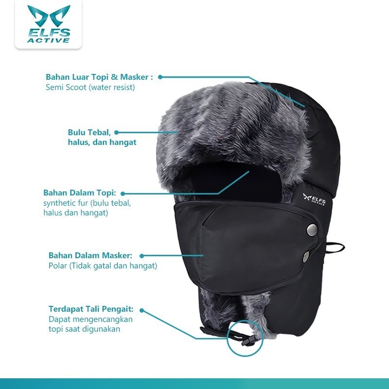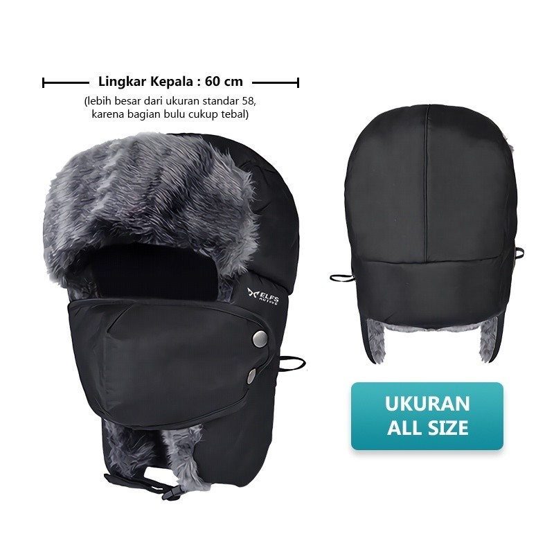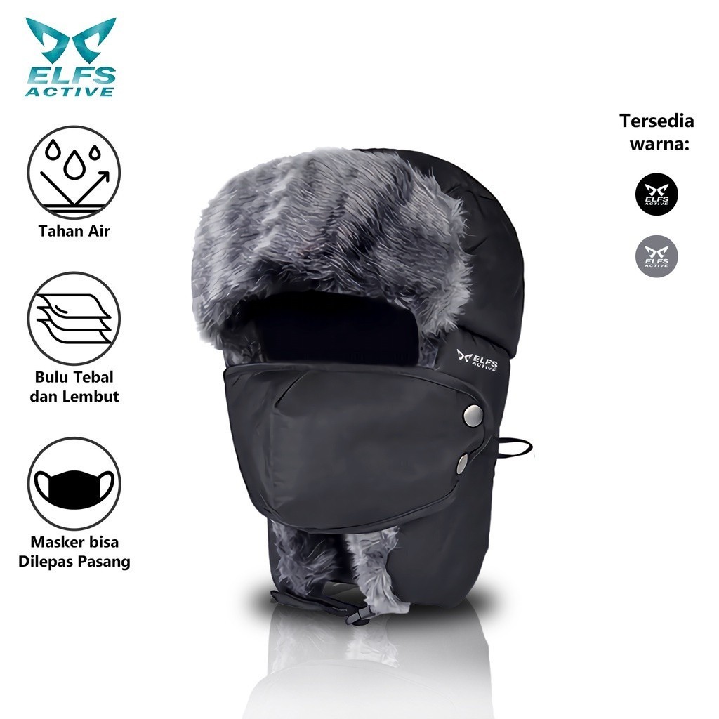 ELFS ACTIVE TOPI USHANKA RUSSIAN TOPI BOMBER 3IN1 CAP DAN MASKER WATER RESIST WINTER BOMBER HAT TOPI MUSIM DINGIN TO1