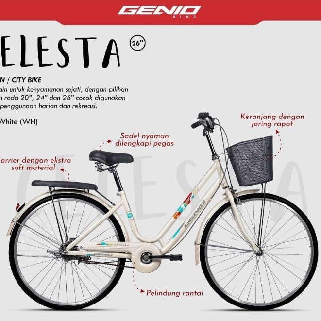 Sepeda Mini 20 24 26 Inch Genio Celesta Cewek Dewasa dan Remaja by United Bike Keranjang Besi dan Boncengan High Quality SNI New