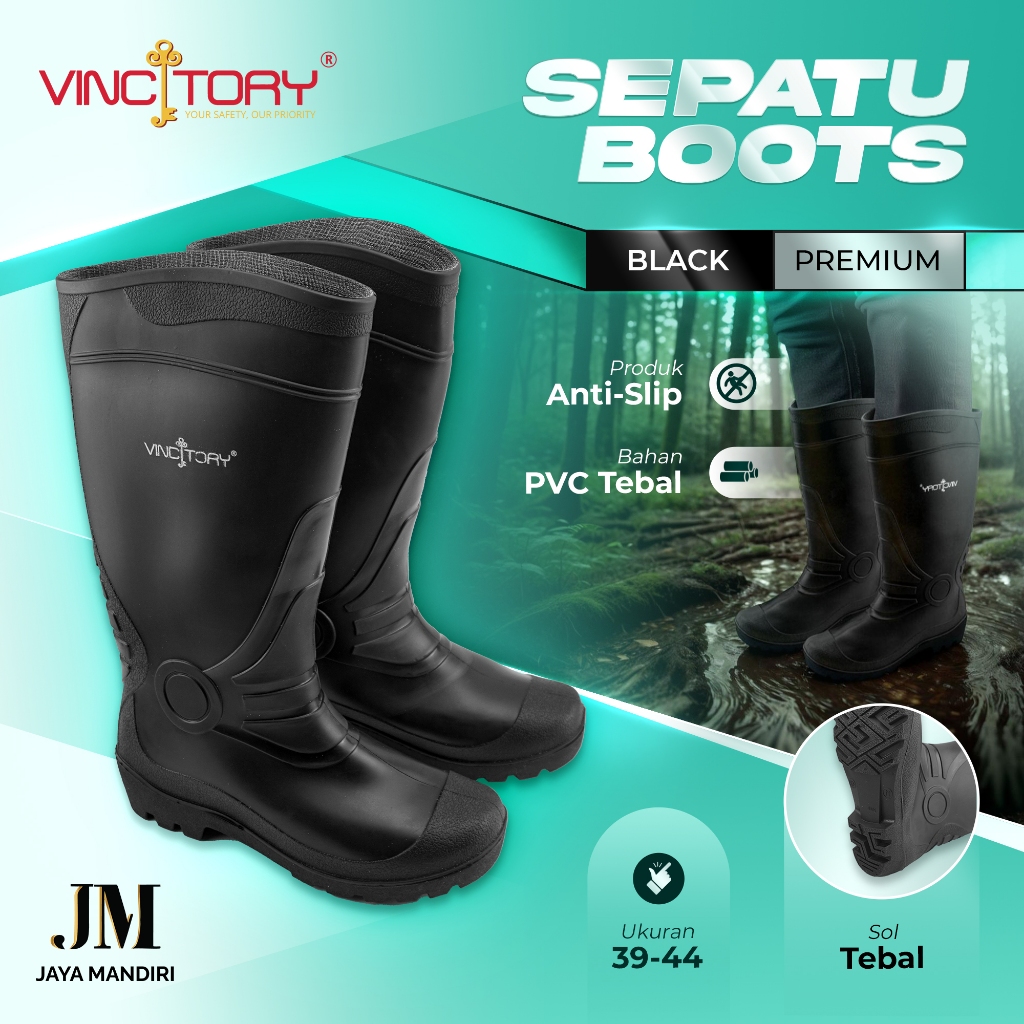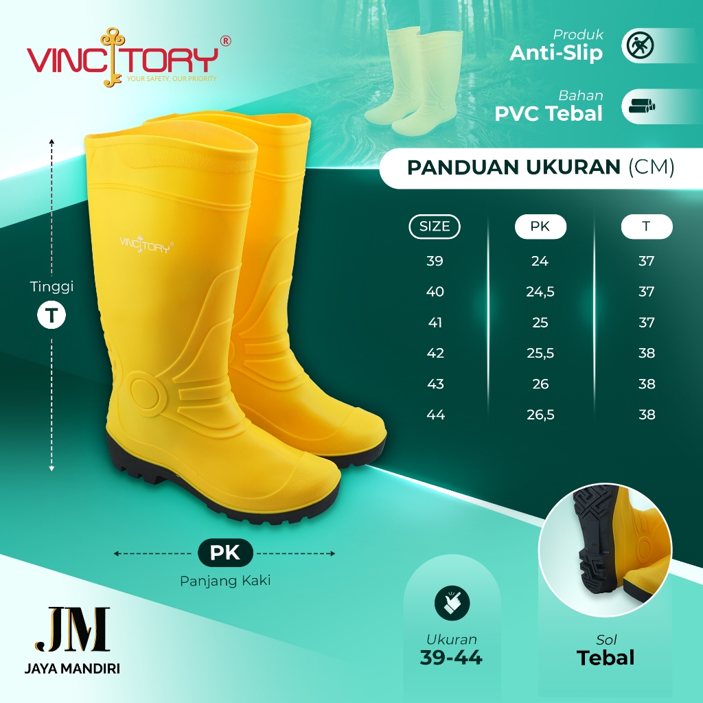 SEPATU BOOT SAFETY PROYEK SAWAH VINCITORY BAHAN KARET PVC PREMIUM ANTI SLIP WARNA KUNING HITAM 2829
