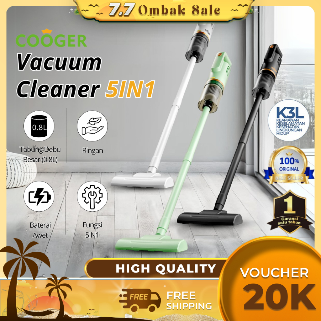 COOGER Vacum Cleaner 5IN1 Vacuum Lantai Penyedot Debu 5IN1 Dengan Gagang Panjang Hijau Alat Penyedot Debu Serbaguna Penyedot Debu Lantai