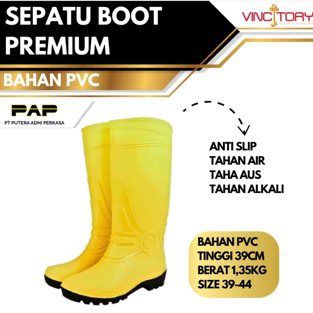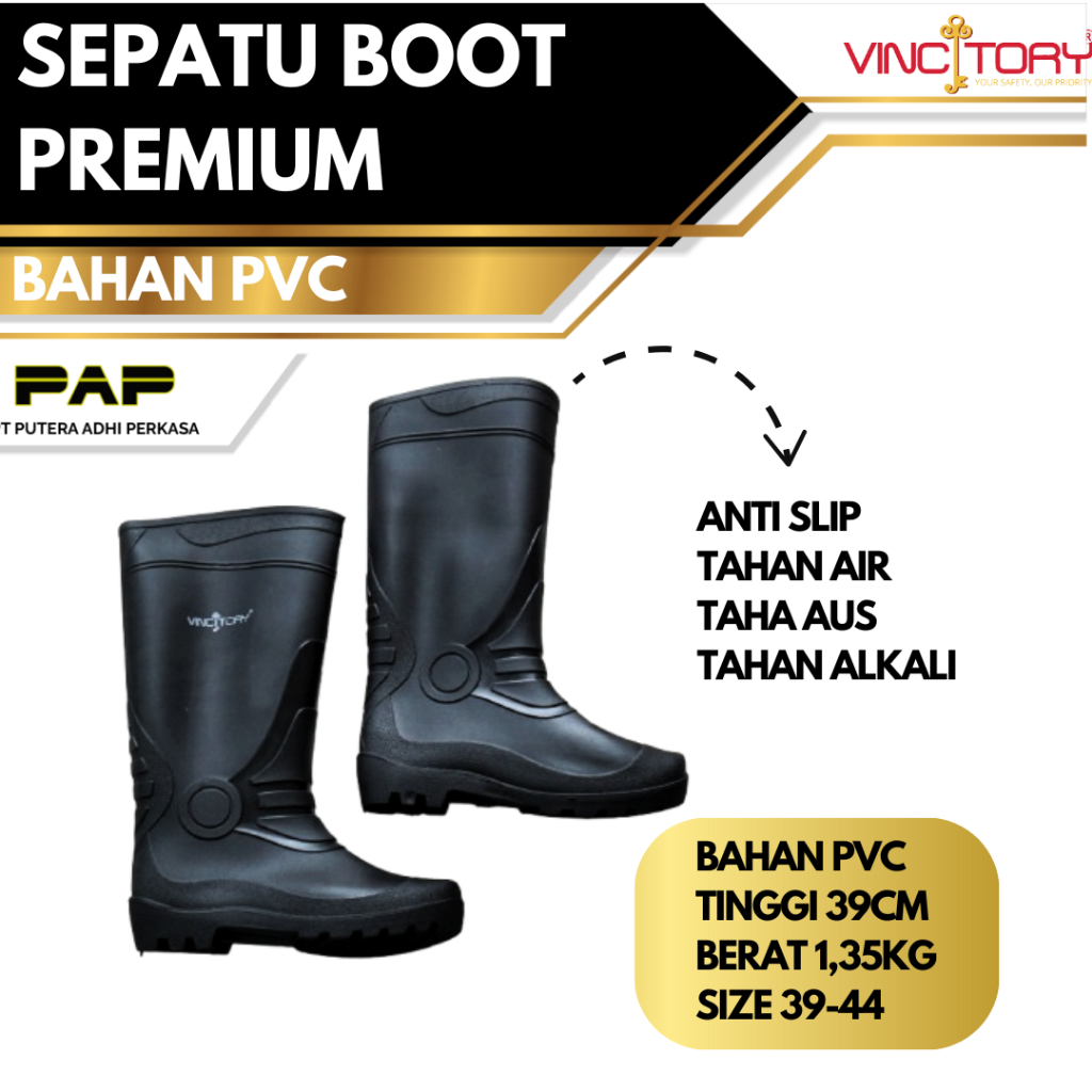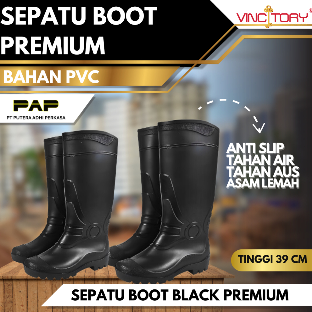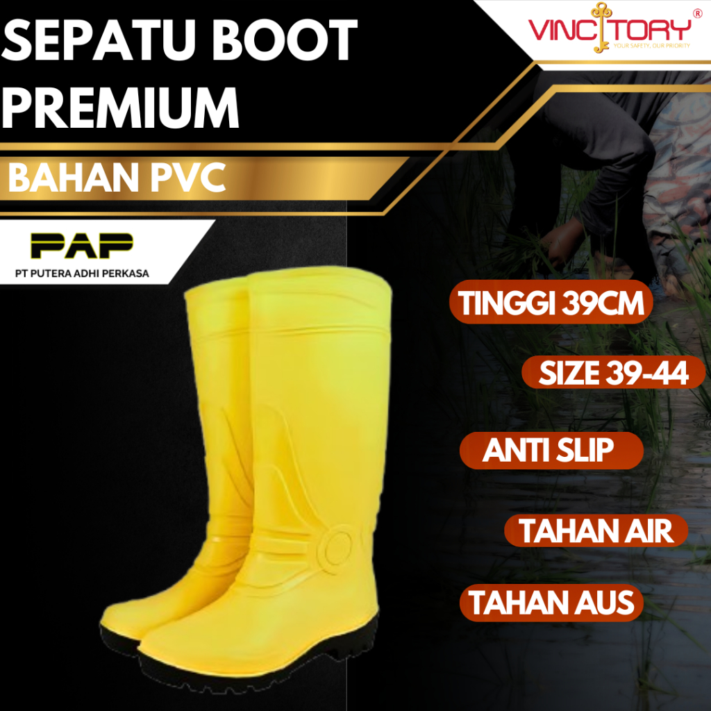 VINCITORY SEPATU BOOT BLACK YELLOW PREMIUM ANTI SLIP MURAH MULTIFUNGSI SEPATU BOOT PROYEK PETANI SAWAH TERNAK ANTI AIR