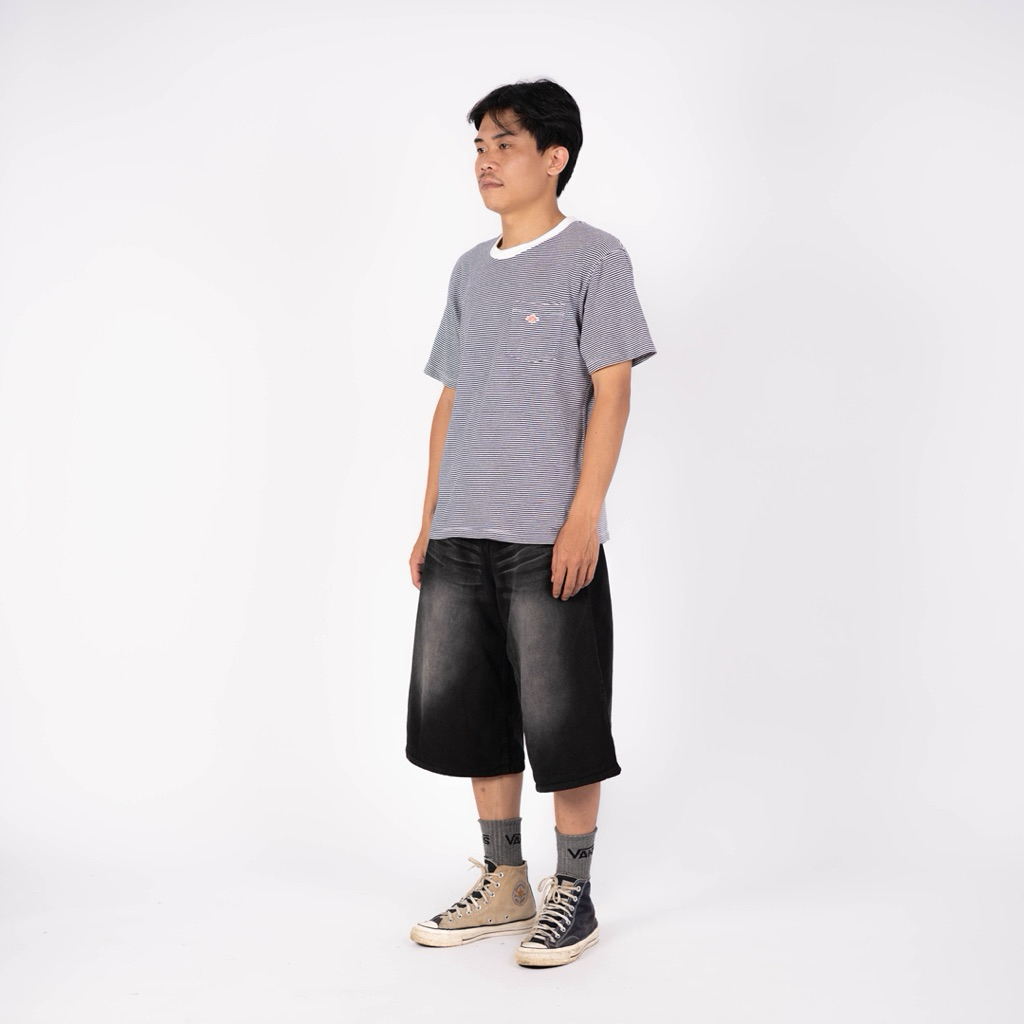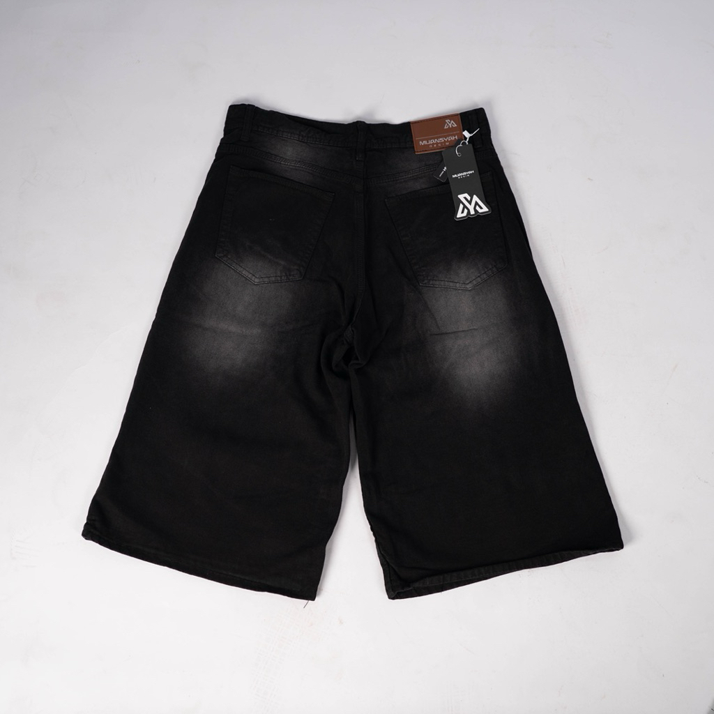 Jorts Denim Pants Kulot Jeans Short Pendek Unisex Korean Style Compatible Black Korea Waist Baggy