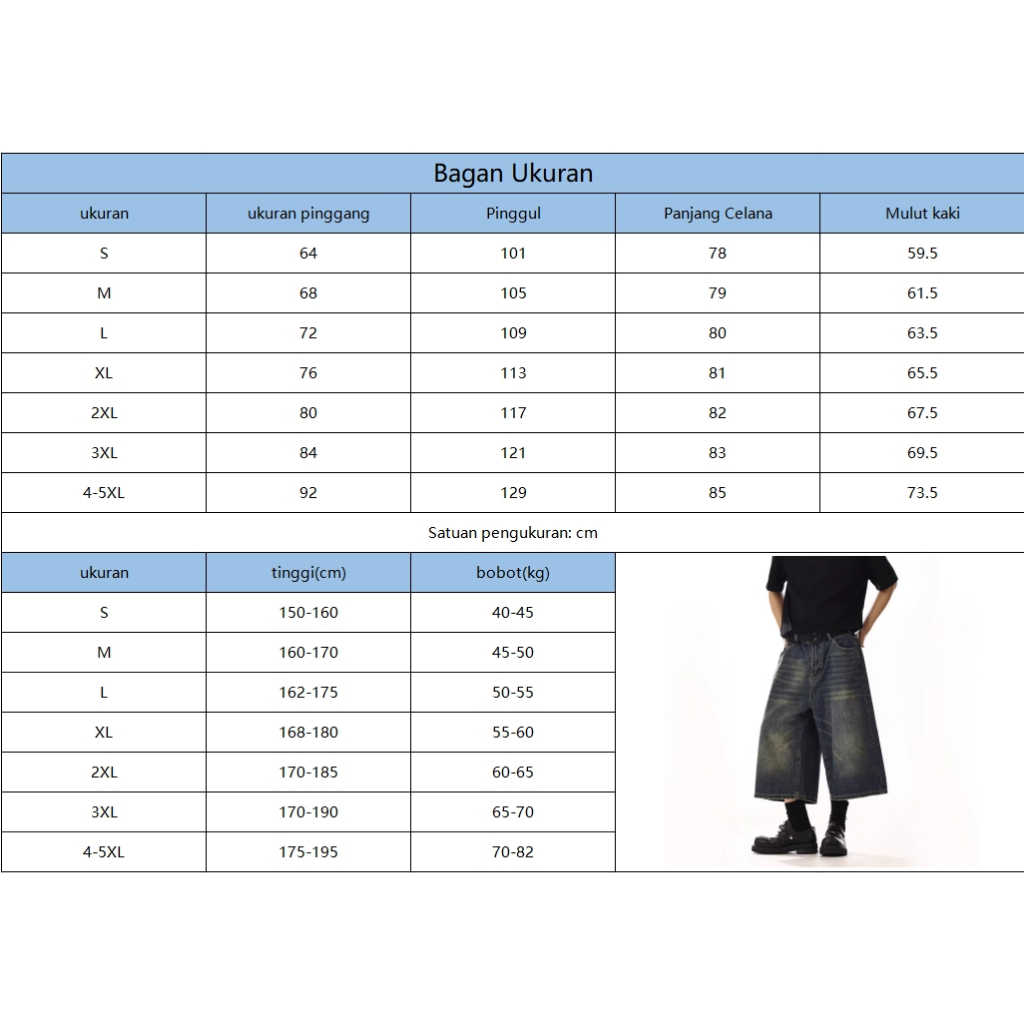 Baggy Denim Celana Pendek Jeans Pria Casual Kulot Korean Style Straight Celana 7/8 Biru Retro