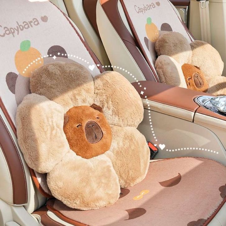 Bantal Mobil 1 PCS Comfortable Plush Seat Cushion Cartoon Design Capybara Car Headrest Simple Cute Auto Lumbar Support