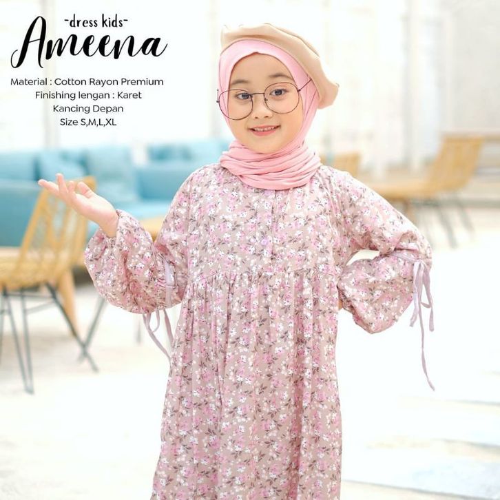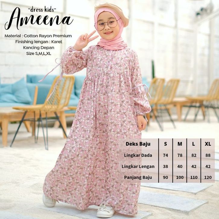 Gamis Anak Motif Bunga Homey Dress Anak Ameena Gamis Anak Muslimah Usia 4-12tahun Bahan Katun Rayon Premium Nyaman