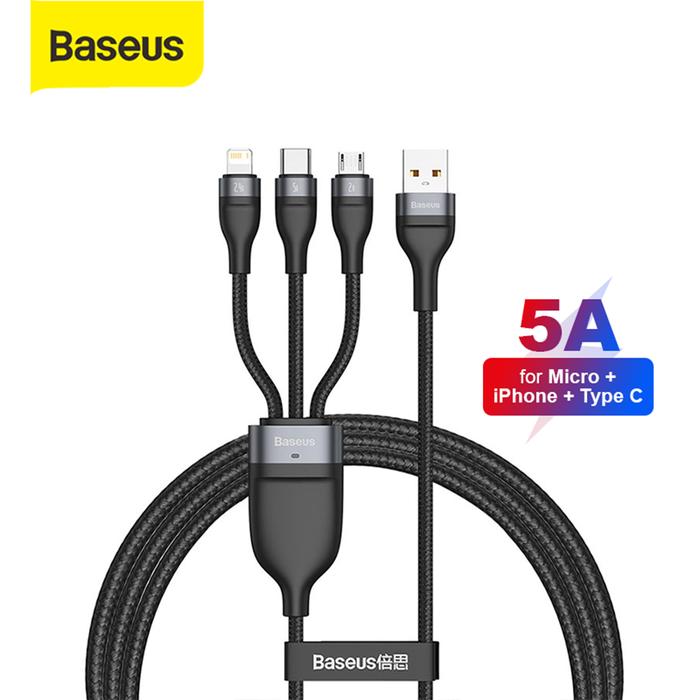 Baseus Kabel Data Charger HP Fast Charging 3IN1 Micro USB Lightning Type C 5A 1.2M