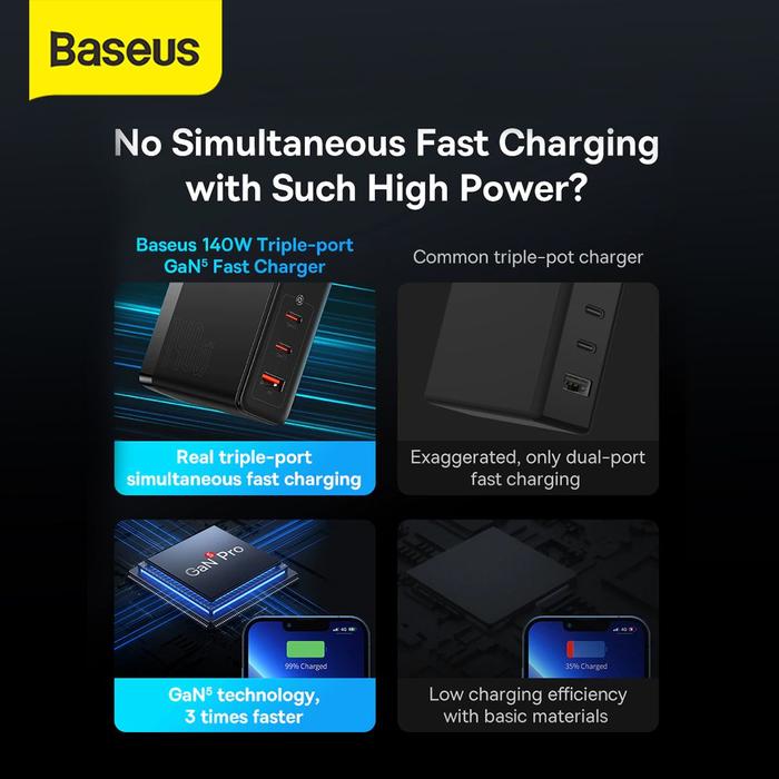 BASEUS GAN5 PRO 140W FAST CHARGER HANDPHONE ADAPTOR LAPTOP USB TYPE C