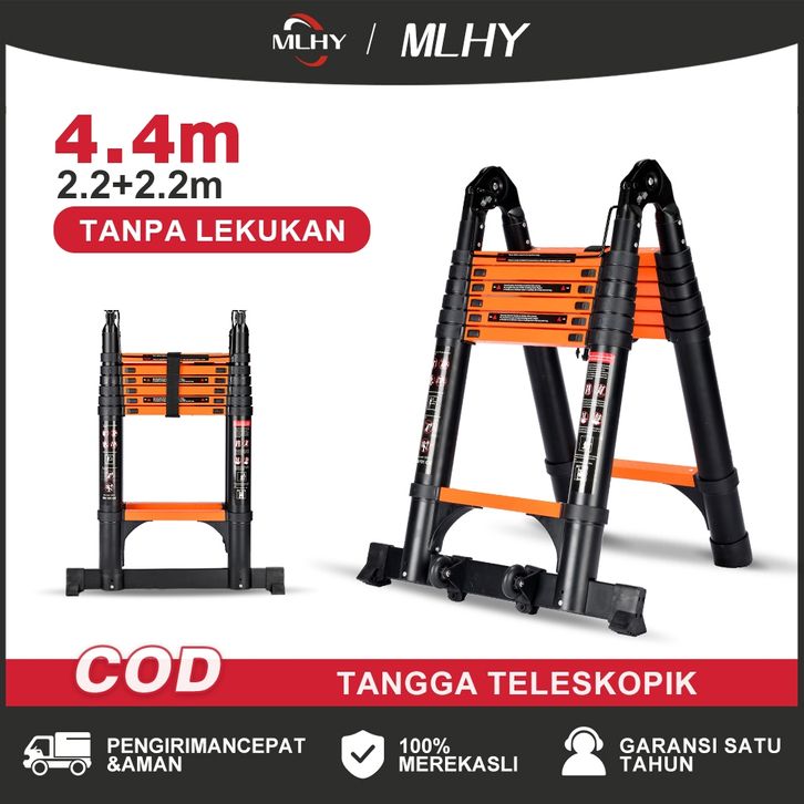 MLHY Tangga Teleskopik Tanpa Lekukan (2.2+2.2)4.4M Aluminium Double Telescopic Ladder 4.4 Meter Original Ready stock