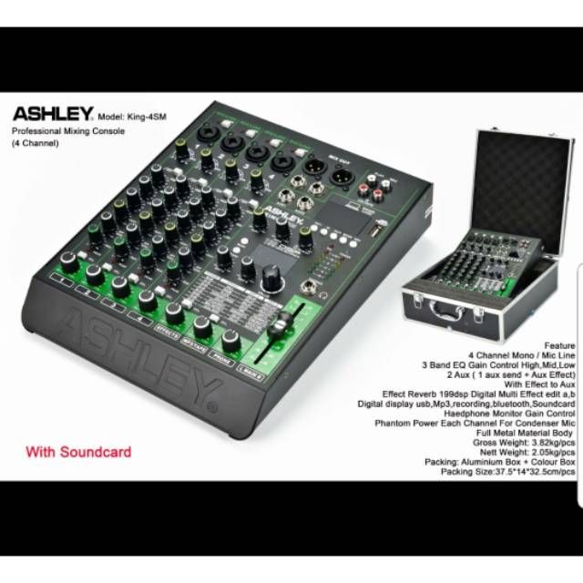 MIXER AUDIO ASHLEY KING 4SM/KING4SM 4CH USB-BLUETOOTH-WITH SOUNDCARD ORIGINAL