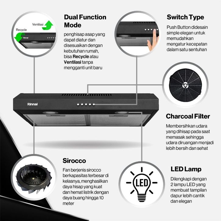 PROMO [KARGO] RINNAI RH 126B 126SS Cooker Hood RH126B Penghisap Dapur 595mm RH 126 B SS agabr