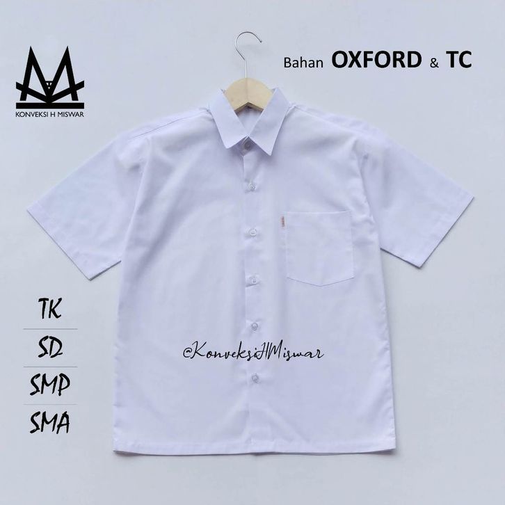 Seragam Sekolah - Baju Putih Lengan Pendek Polos SD SMP SMA Dewasa - Oxford TC Tebal