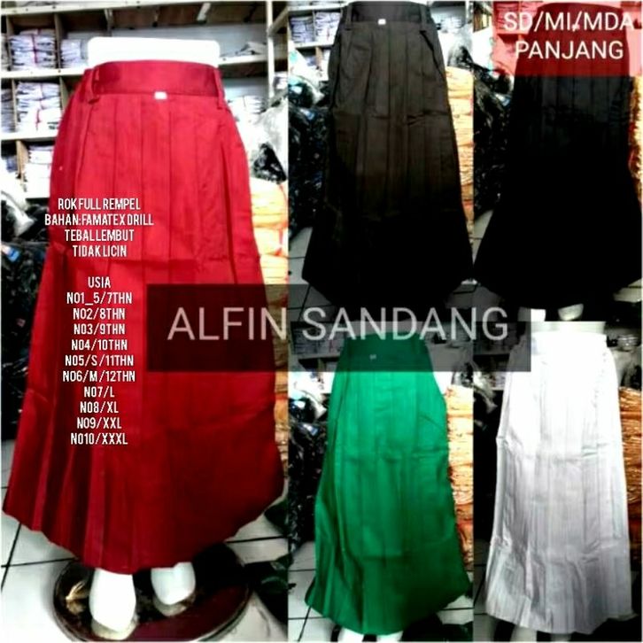 seragam sekolah Rok SD Panjang Kelas 1/2/3/4/5/6 rempel polos merah dan hijau maxi plisket prisket