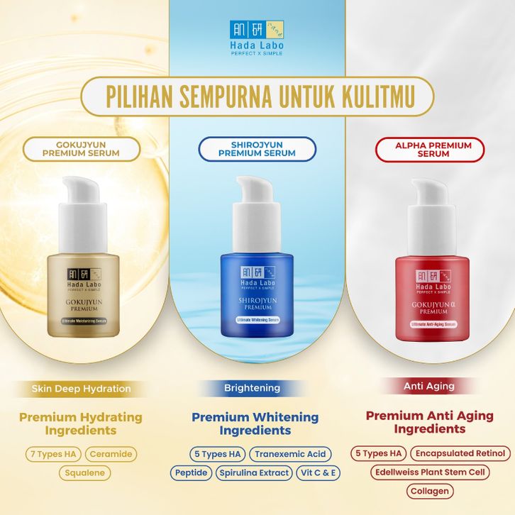 HADA LABO Gokujyun Anti-Aging, Moisturizing Premium, Shirojyun Whitening | Face Wajah Serum Hadalabo